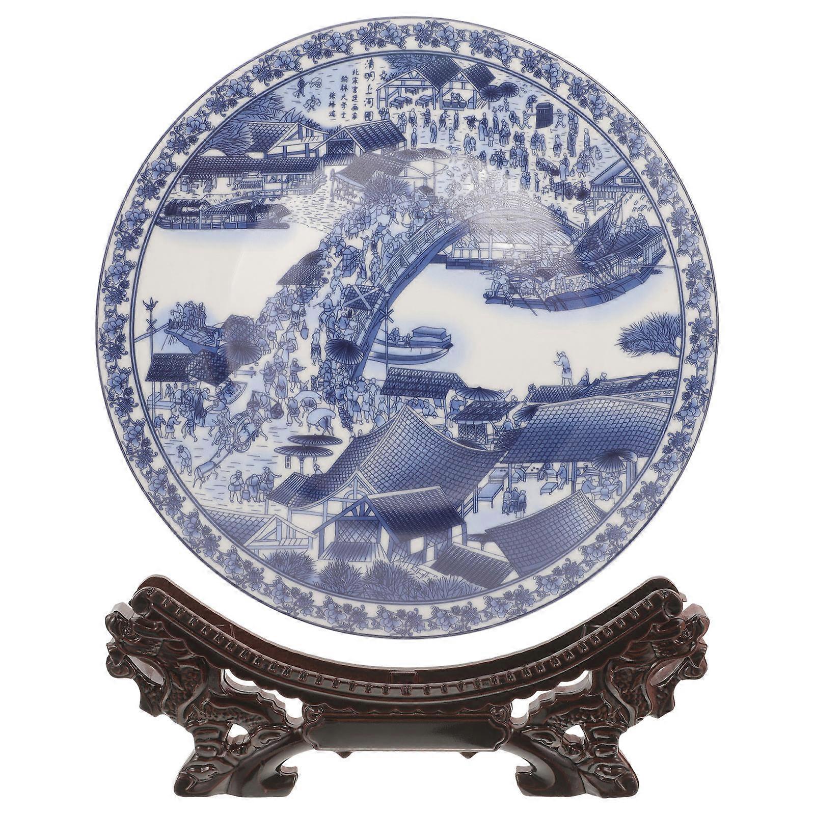 Home Ceramic Plate China Style For Office Decoration And Easy To Clean 1 Set