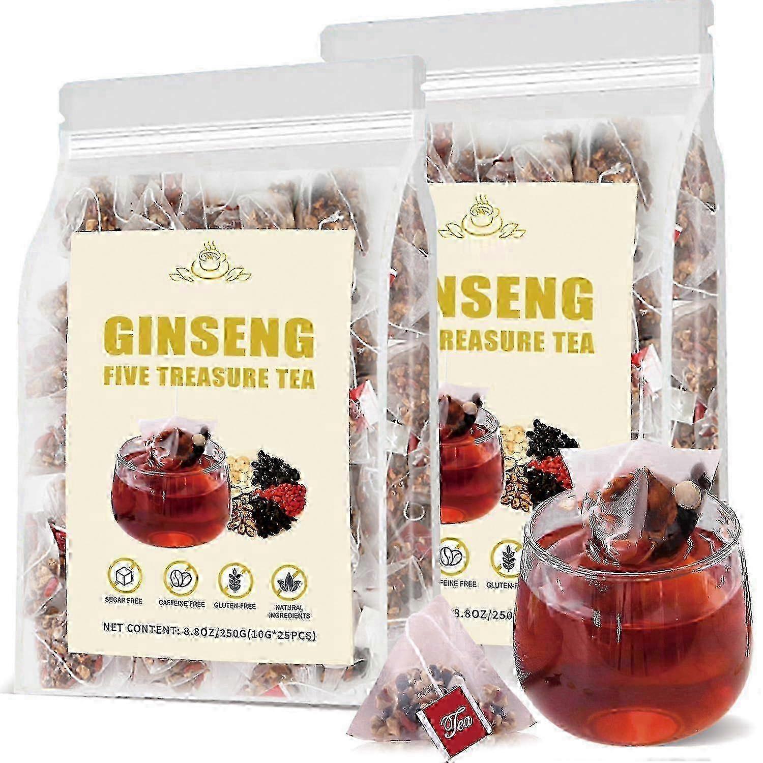 Ginseng Five Treasures & Six Treasure Kidney Tea, Chinese Red Date Herbal Detox Blend for Men & Women's Health
