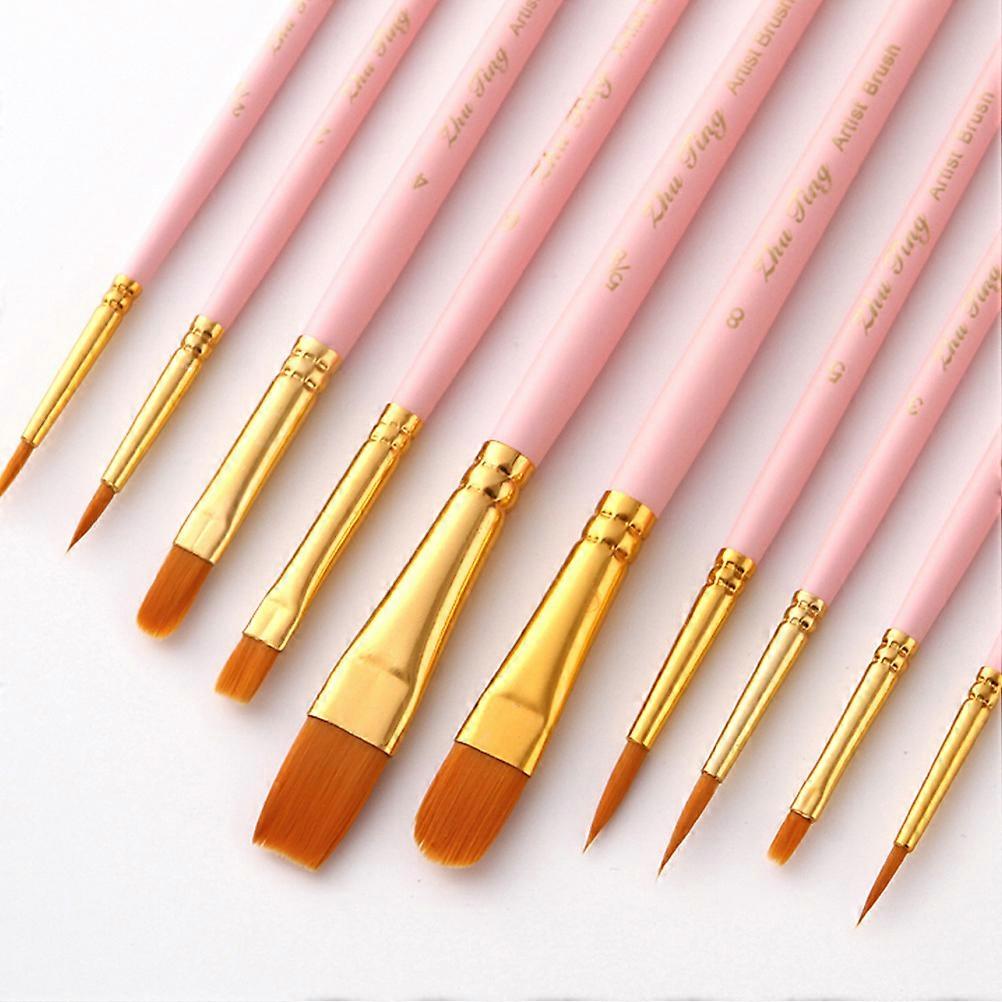 Wood Handle Paint Brush Paint Brush Set for Painting Use 10Pcs Pink Brushes