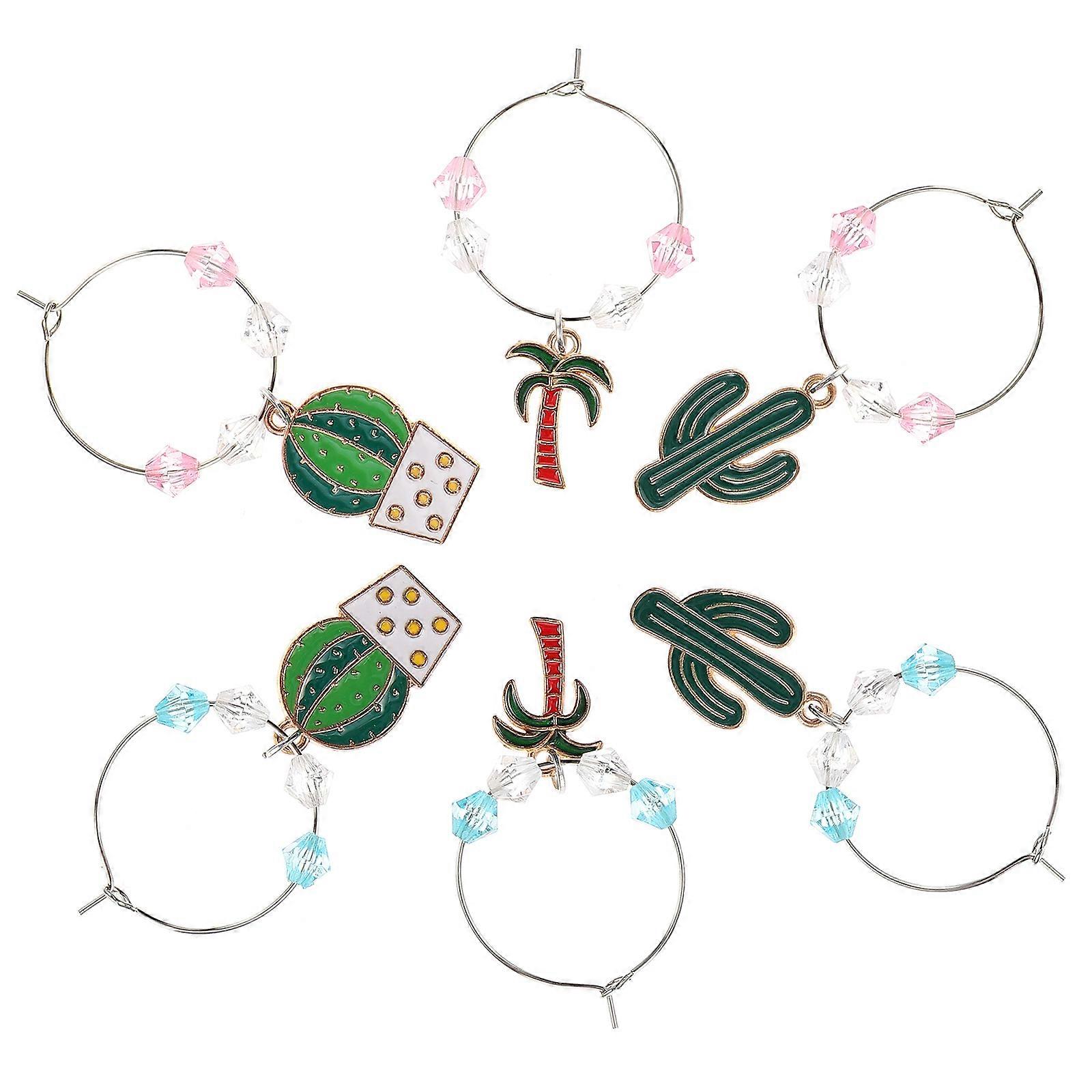 Wine Glass Ring Cactus Design for Decoration 6Pcs Assorted Color Metal