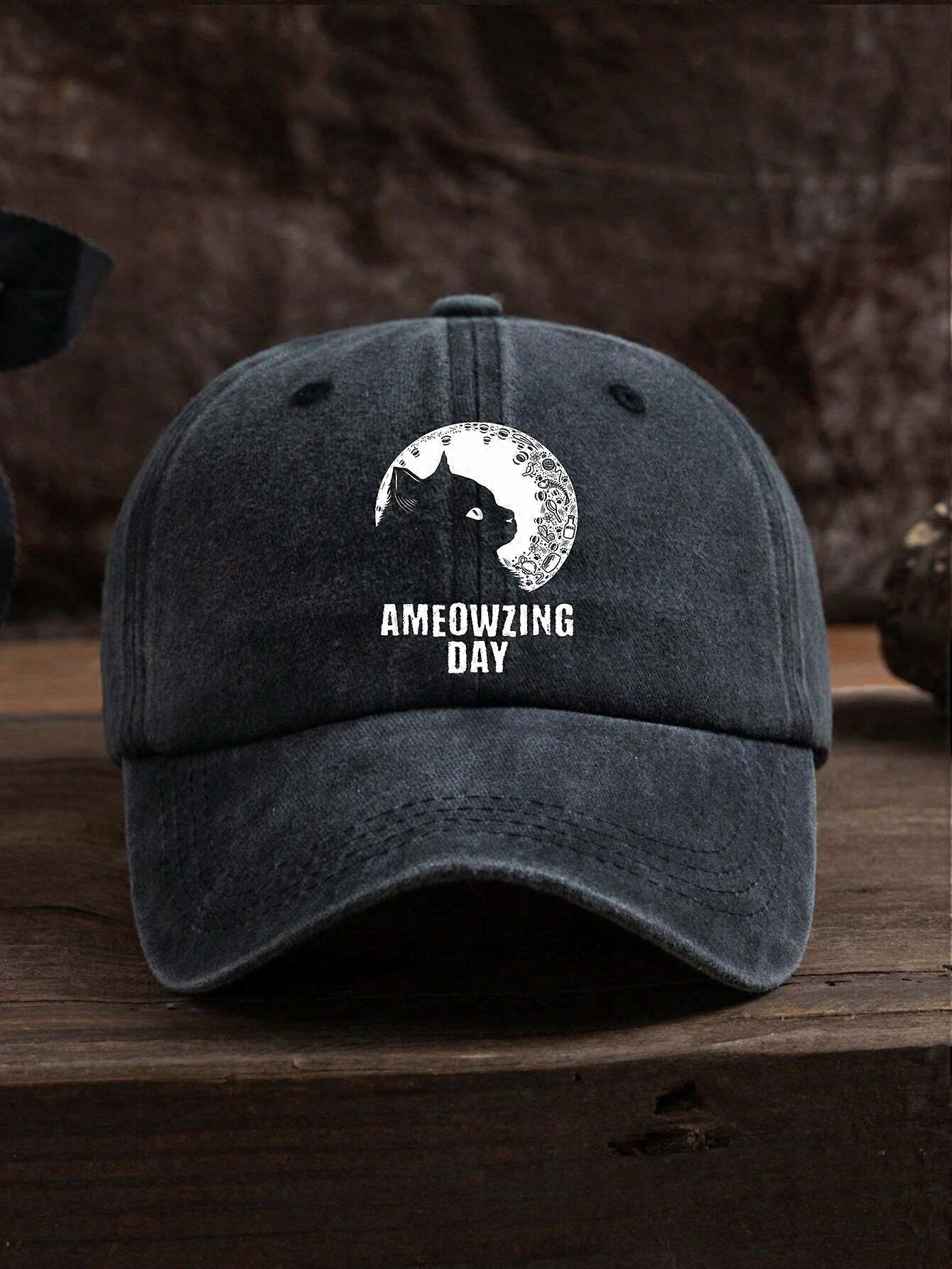 Washed Dark Grey "AMEOWZING DAY" Cat Graphic Baseball Cap | Cat Lover Inspired Casual Hat