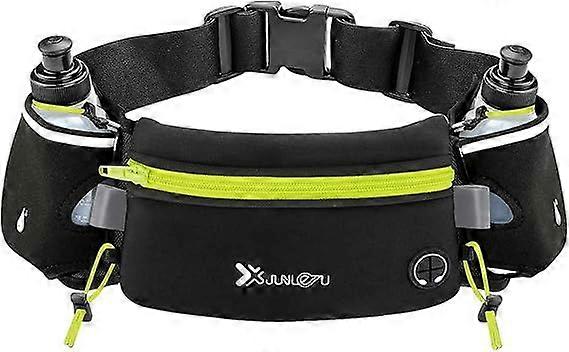 Running Belt with 2pcs 175ml Water Bottles, Waterproof Waist Pack Bag Fits iPhones Adjustable Sports Waist Pouch for Marathon Running Hiking Cycling