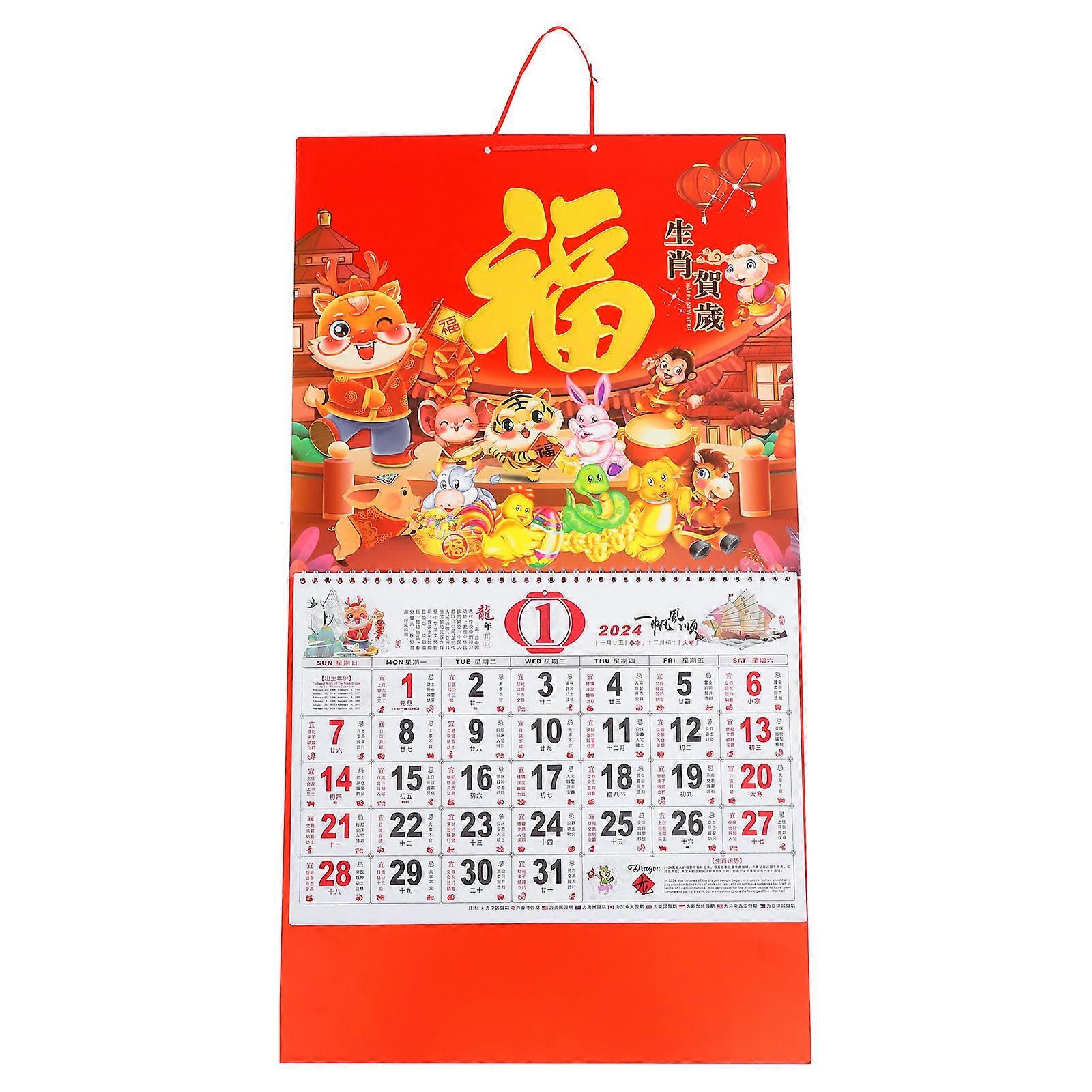 Household Hanging Calendar Calendar for Home Use 2Pcs Traditional Red Paper