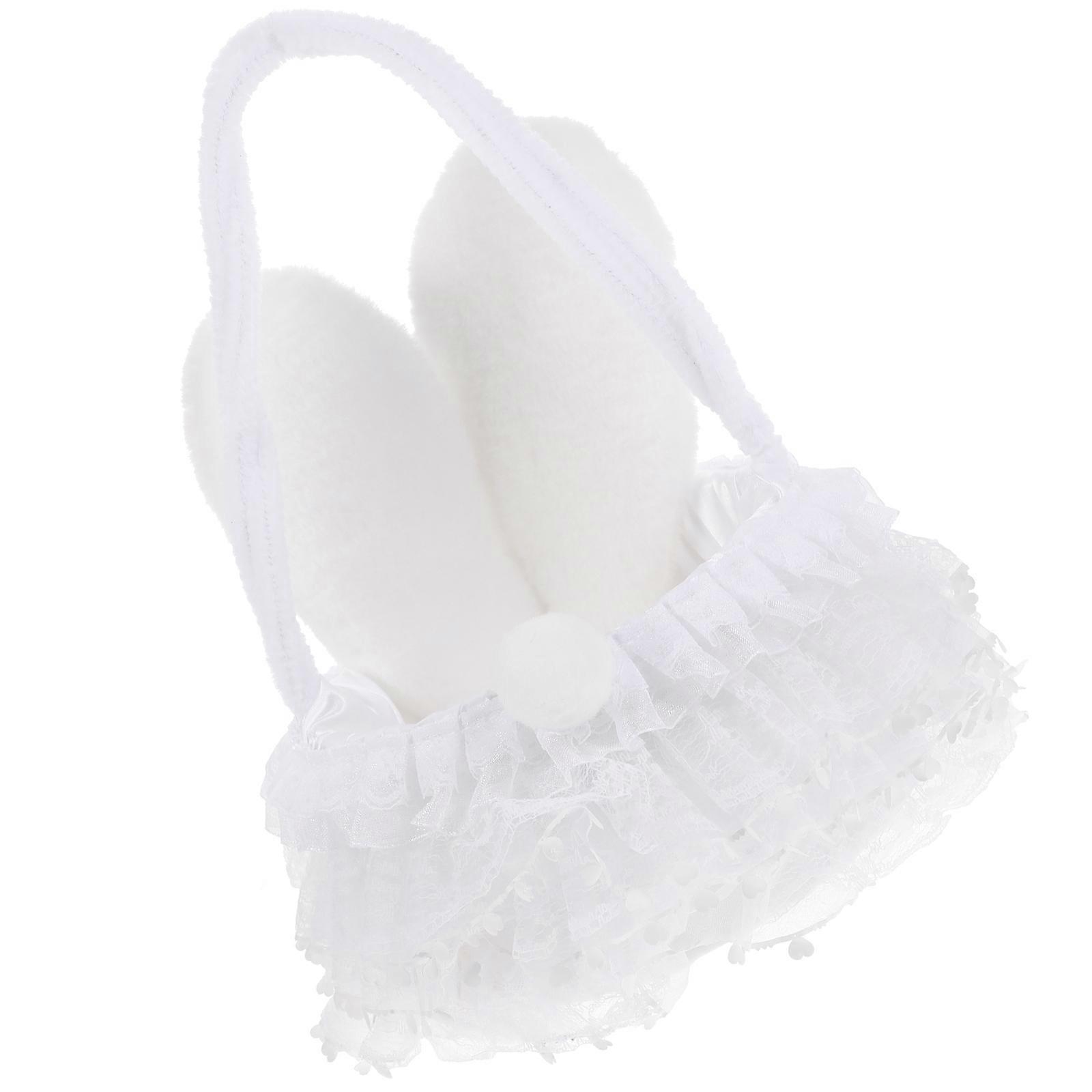 Bunny Ear Flower Basket Adorable Storage for Kids At Weddings Parties and Graduation Made of White Pu Plush Satin and Wire 1Pack