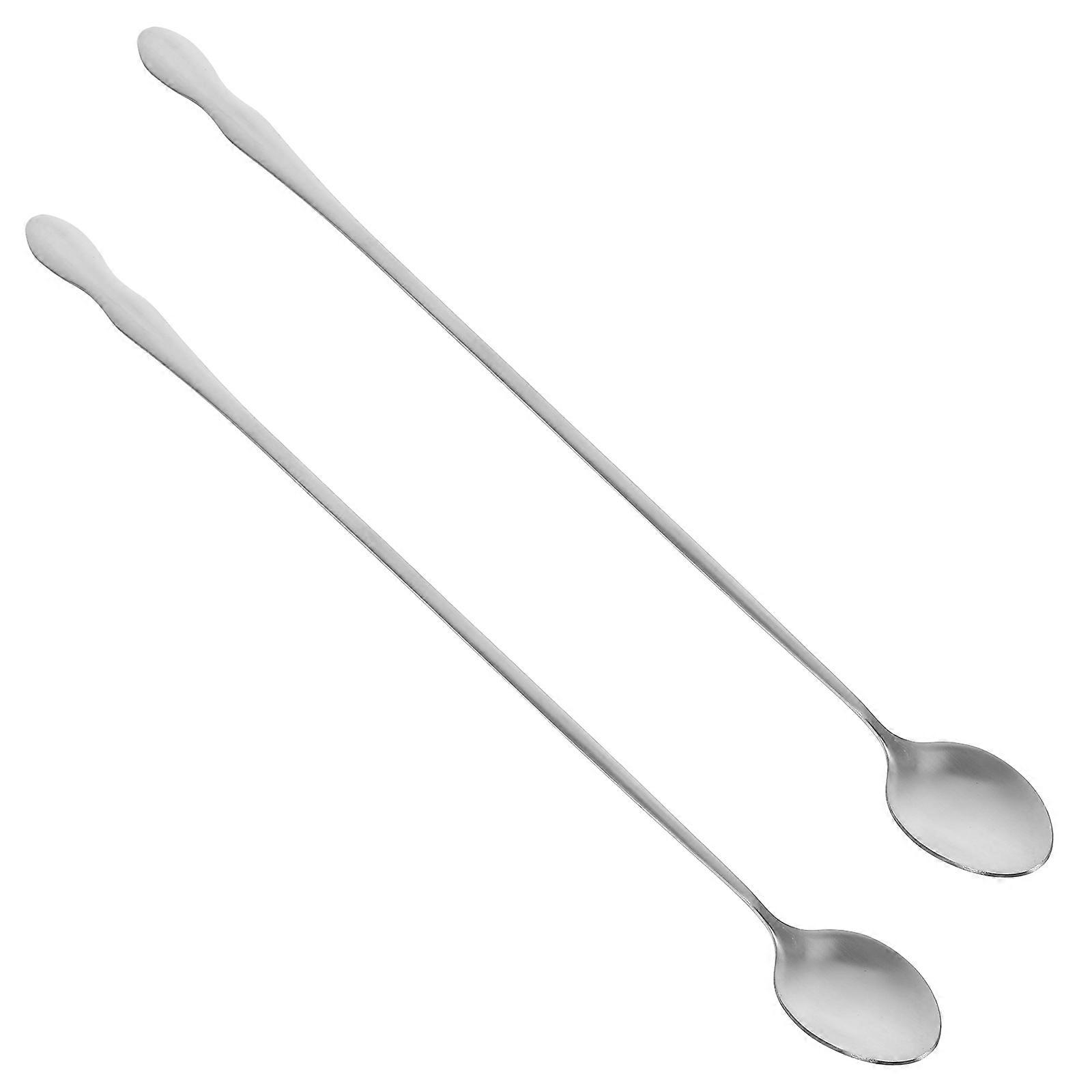 2Pcs Stainless Steel Soup Spoon for Stirring Long Handle Silver Serving Tool