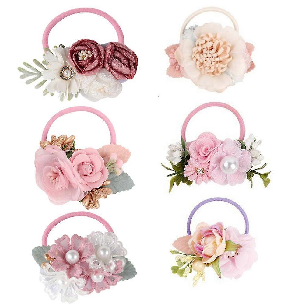 Flower Hair Ties Elastic Baby Hair Bands for Girls 6Pcs Collection