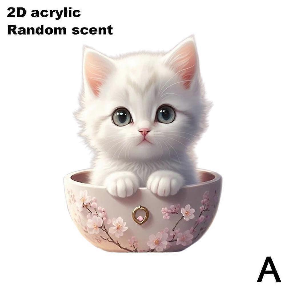 Cute Cat Car Air Vent Clip Aromatherapy Diffuser With Random Scent And Card Slot Cover
