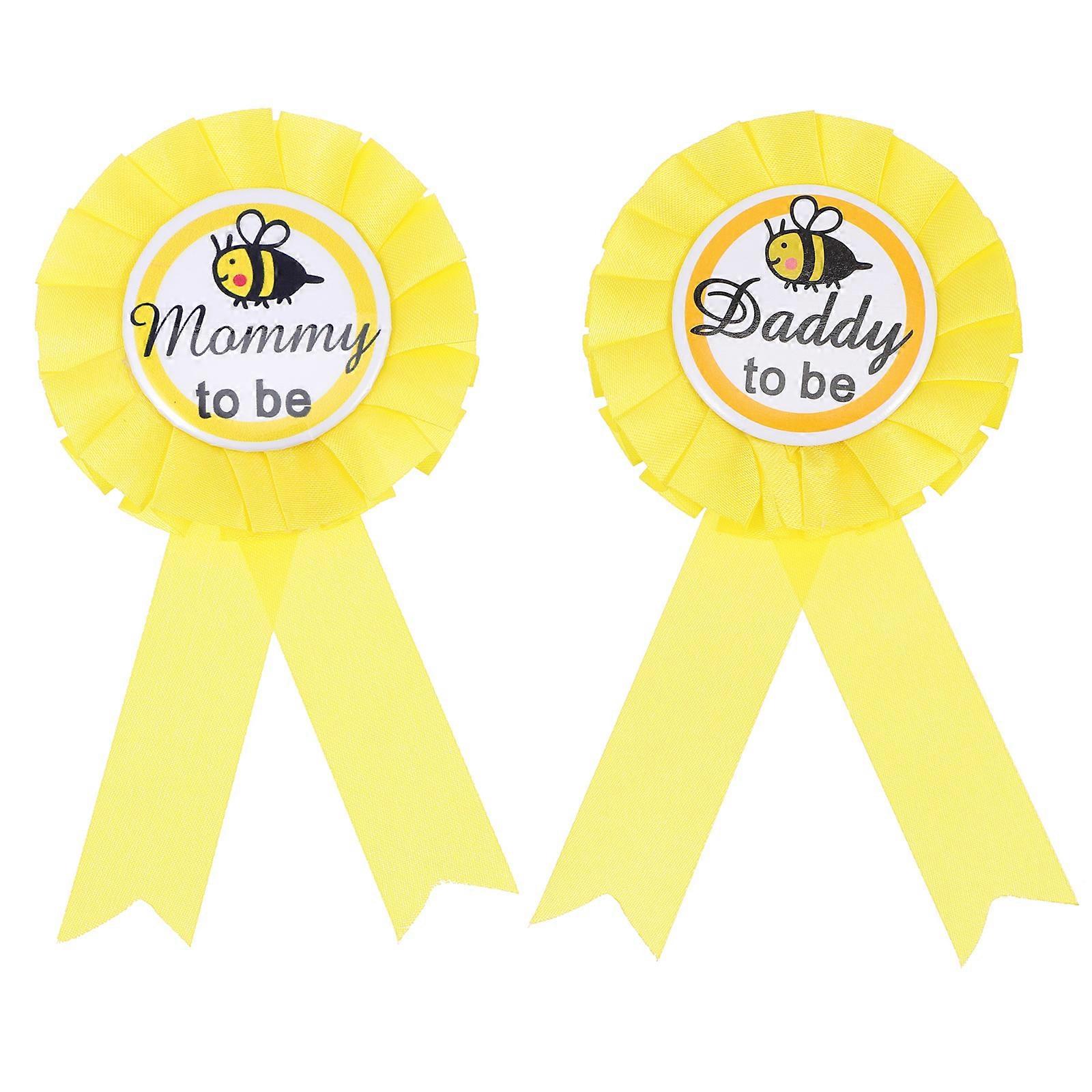Baby Shower Photo Props Parents Badge Pin Gender Reveal Party Baby Birth Celebration Yellow Paper 2Pcs