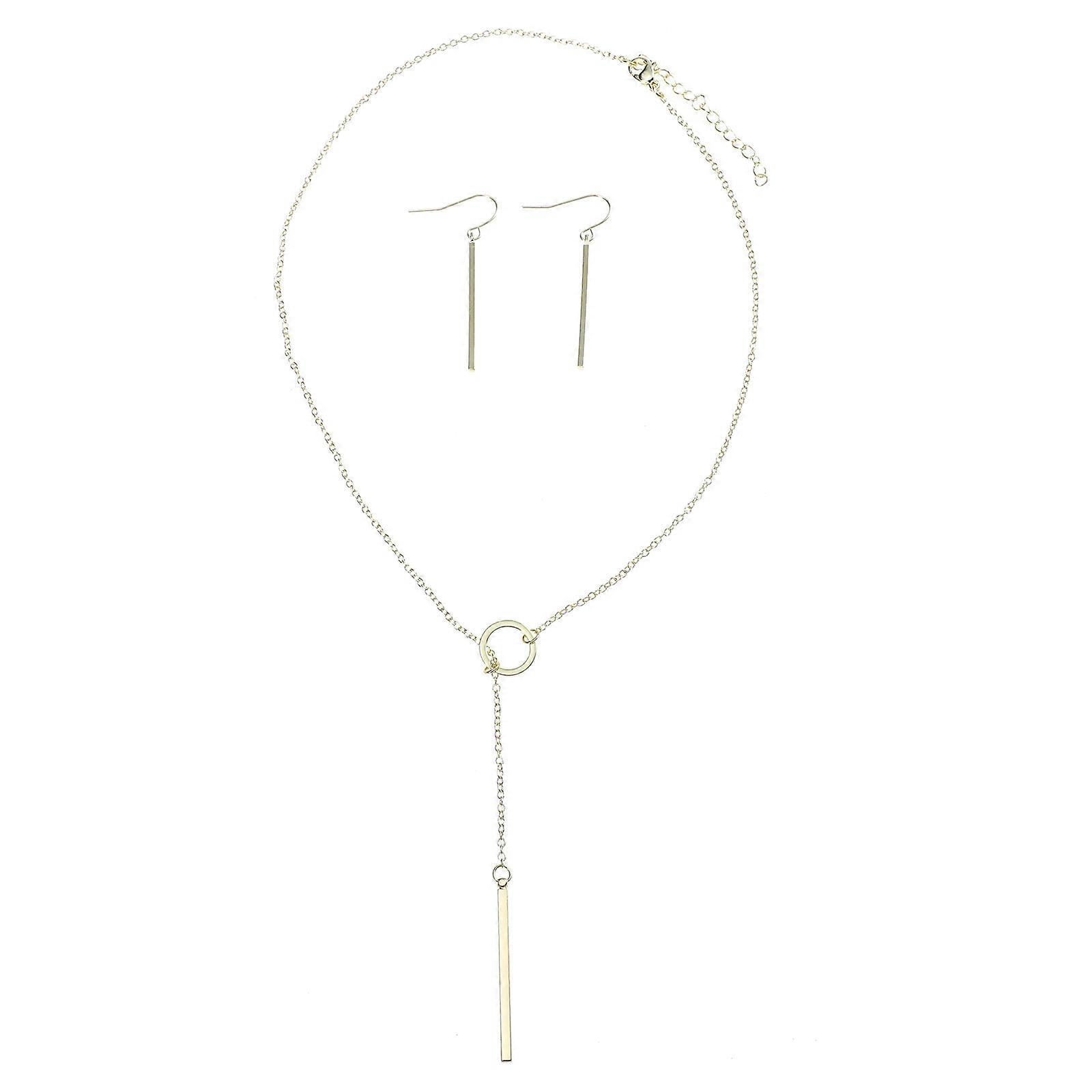 Stainless Steel Necklace Bar Pendant Clavicle Chain Set for Women 1Set