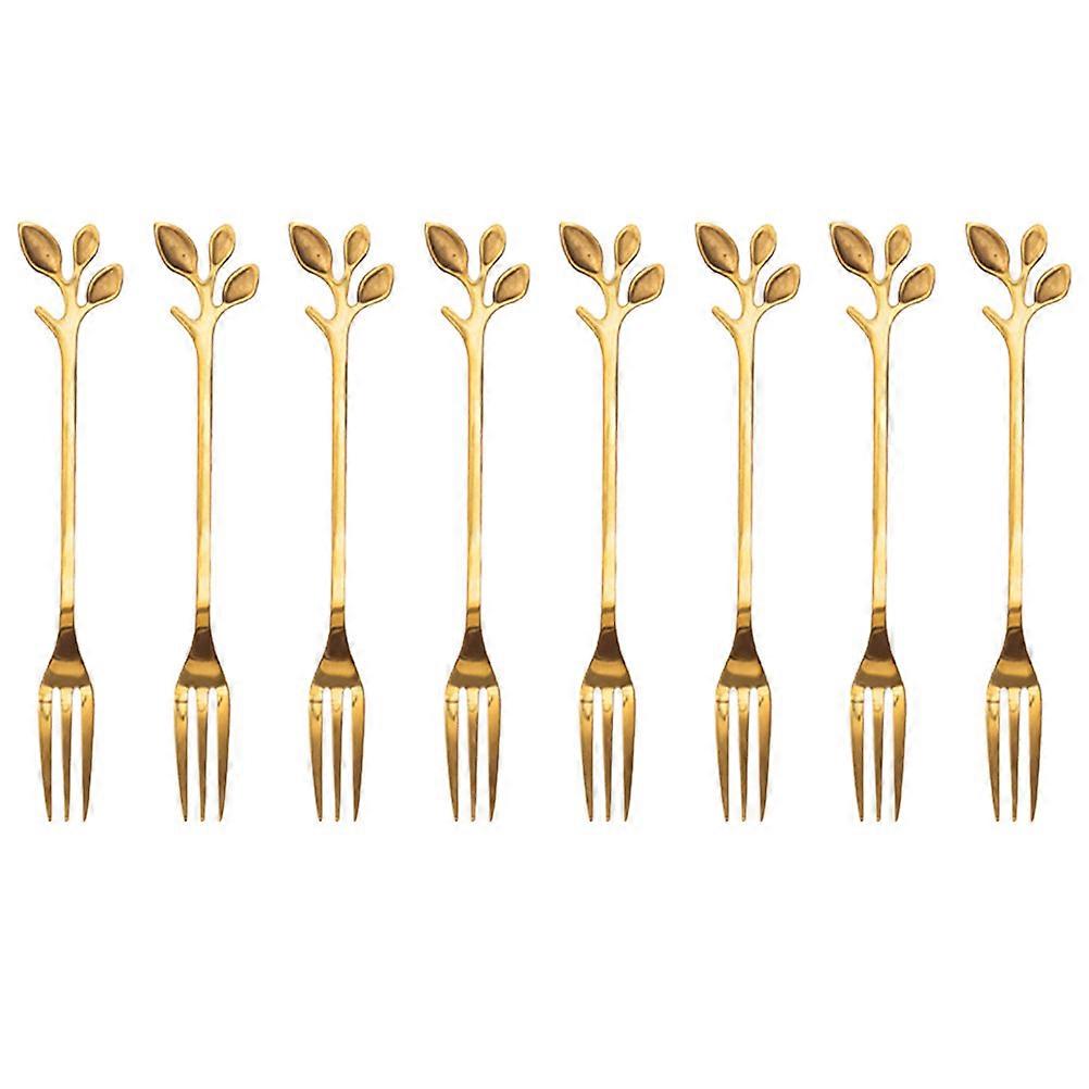 8Pcs Golden Stainless Steel Fruit Forks for Home Leaf Dessert Picks