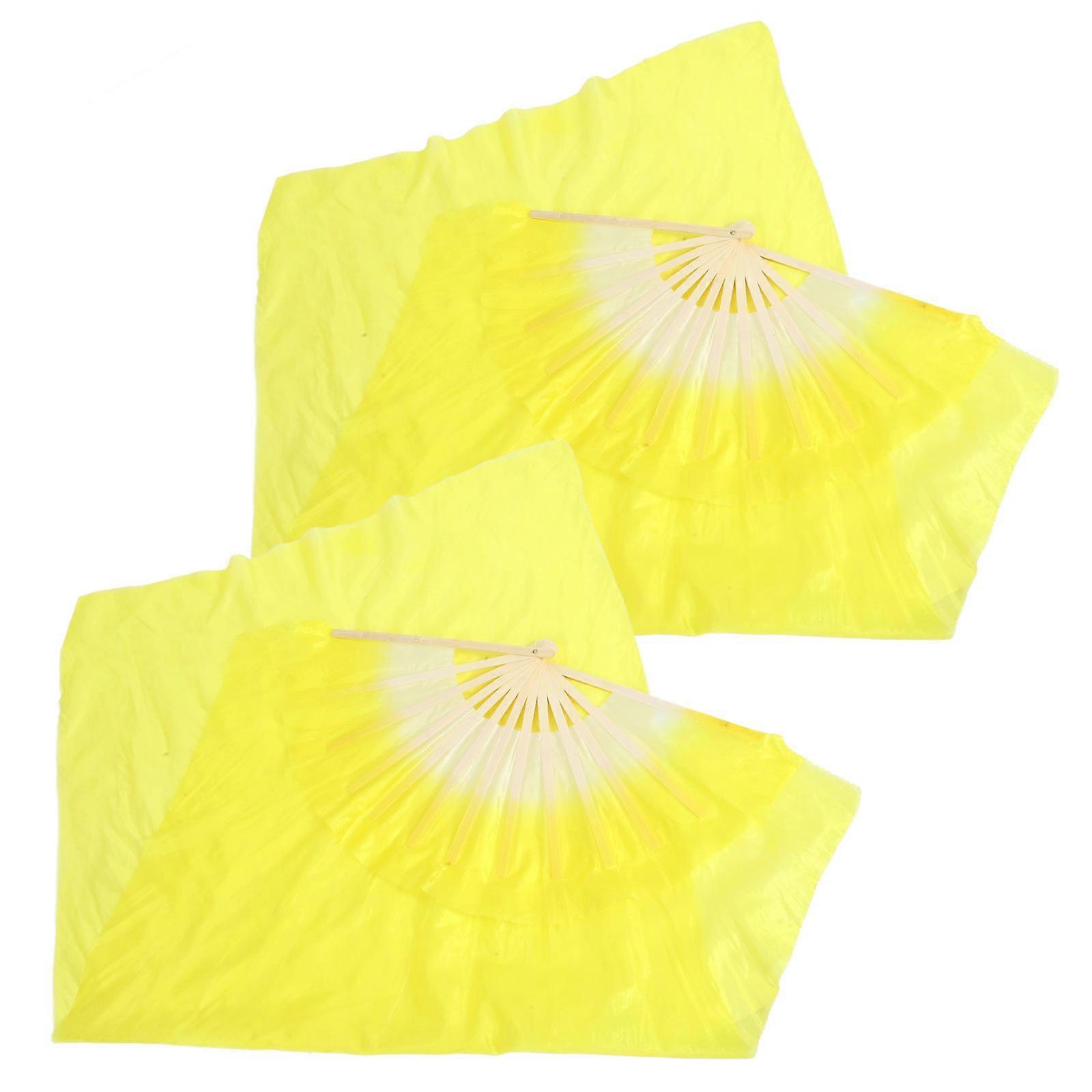 Belly Dancing Veil Fan Dance Tool Foldable Handheld Fan Yellow 120.00X60.00X1.00CM 1 Pair