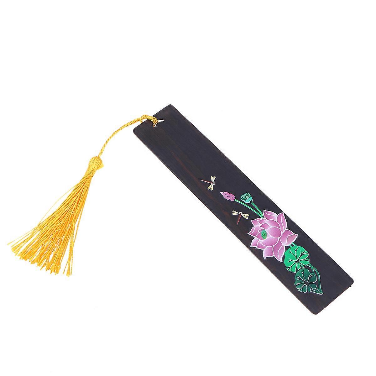 Lotus Painted Bookmark Wooden Handmade Chinese-Style Bookmark with Tassel