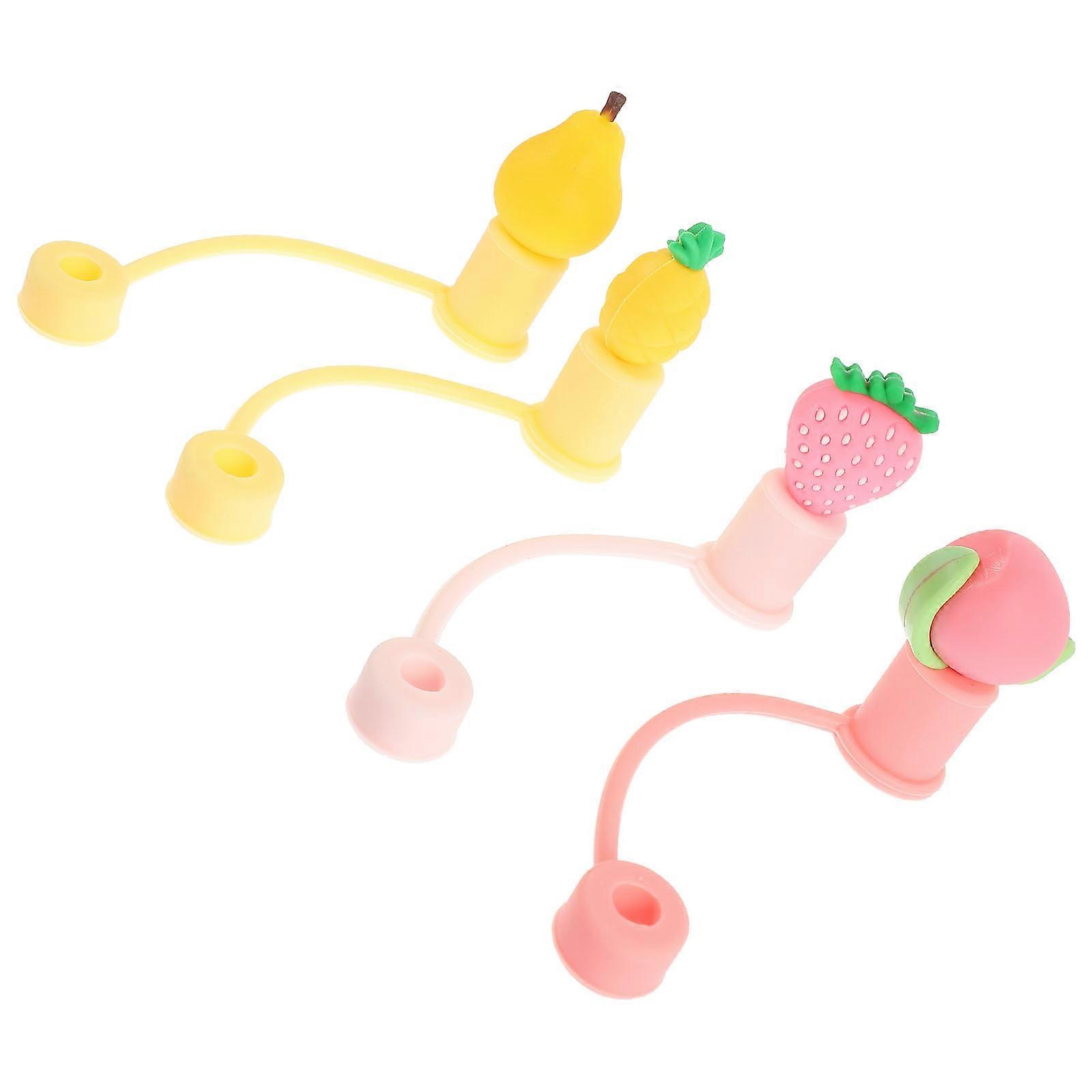 Covers Cartoon Fruits Caps for Drinking 4Pcs Assorted Color Silicone