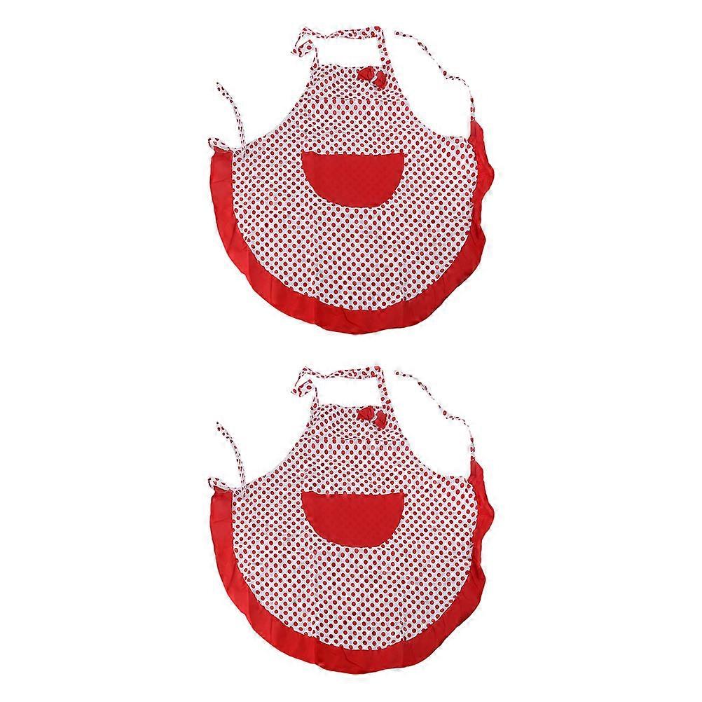 Red Bowknot Cooking Apron with Pocket for Kitchen Use 2Pcs