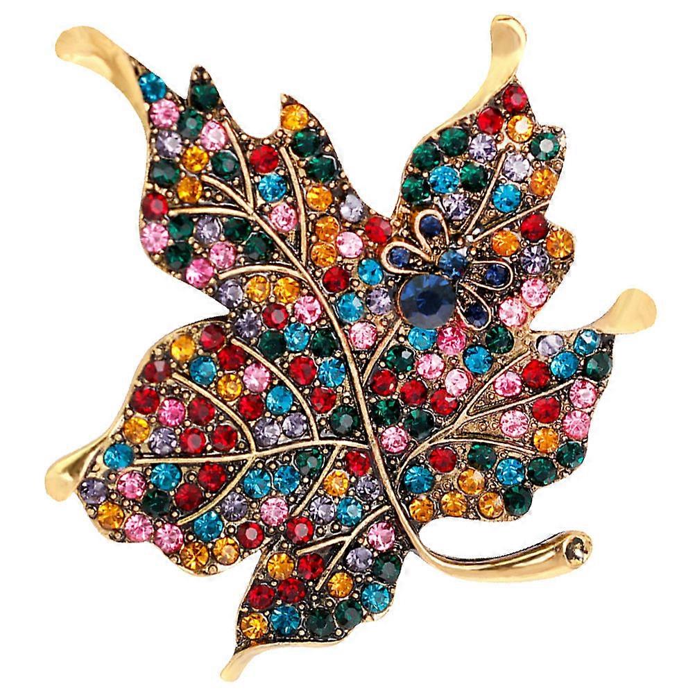 Colorful Rhinestone Maple Leaf Brooch for Clothes Decoration Lapel Pin
