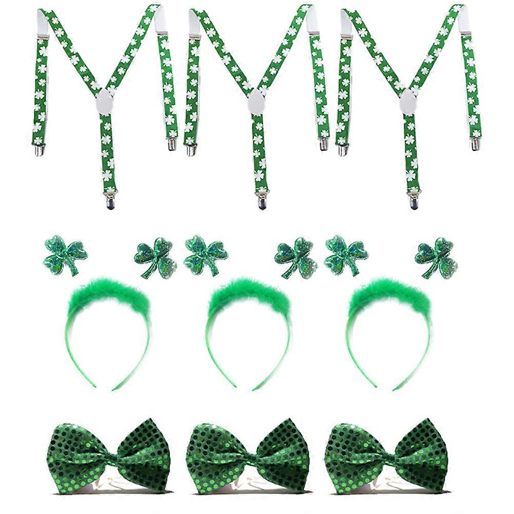 St Patricks Day Accessories Suspenders Holds Pants Securely Green 9Pcs