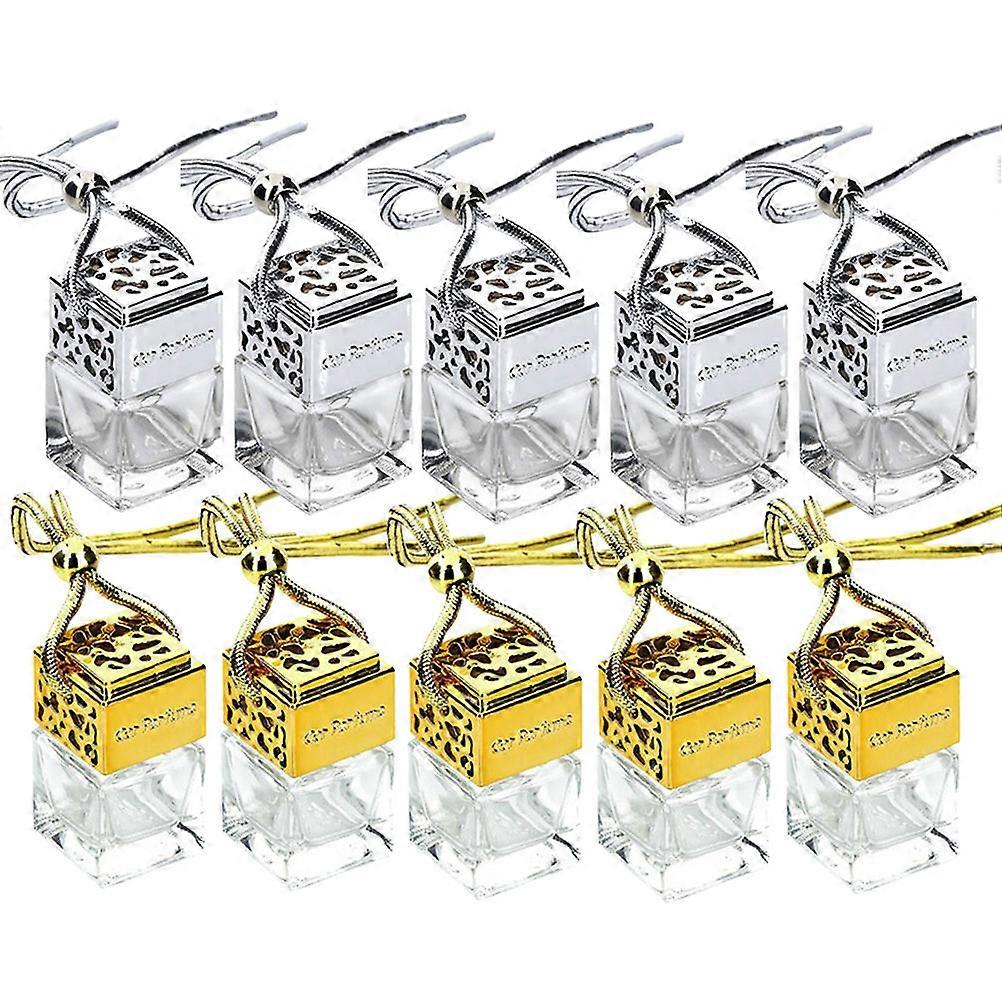 Car Aromatherapy Pendant Creative Square Glass Perfume Bottle For Car Decoration Holds Essential Oil Silver 10 Pcs
