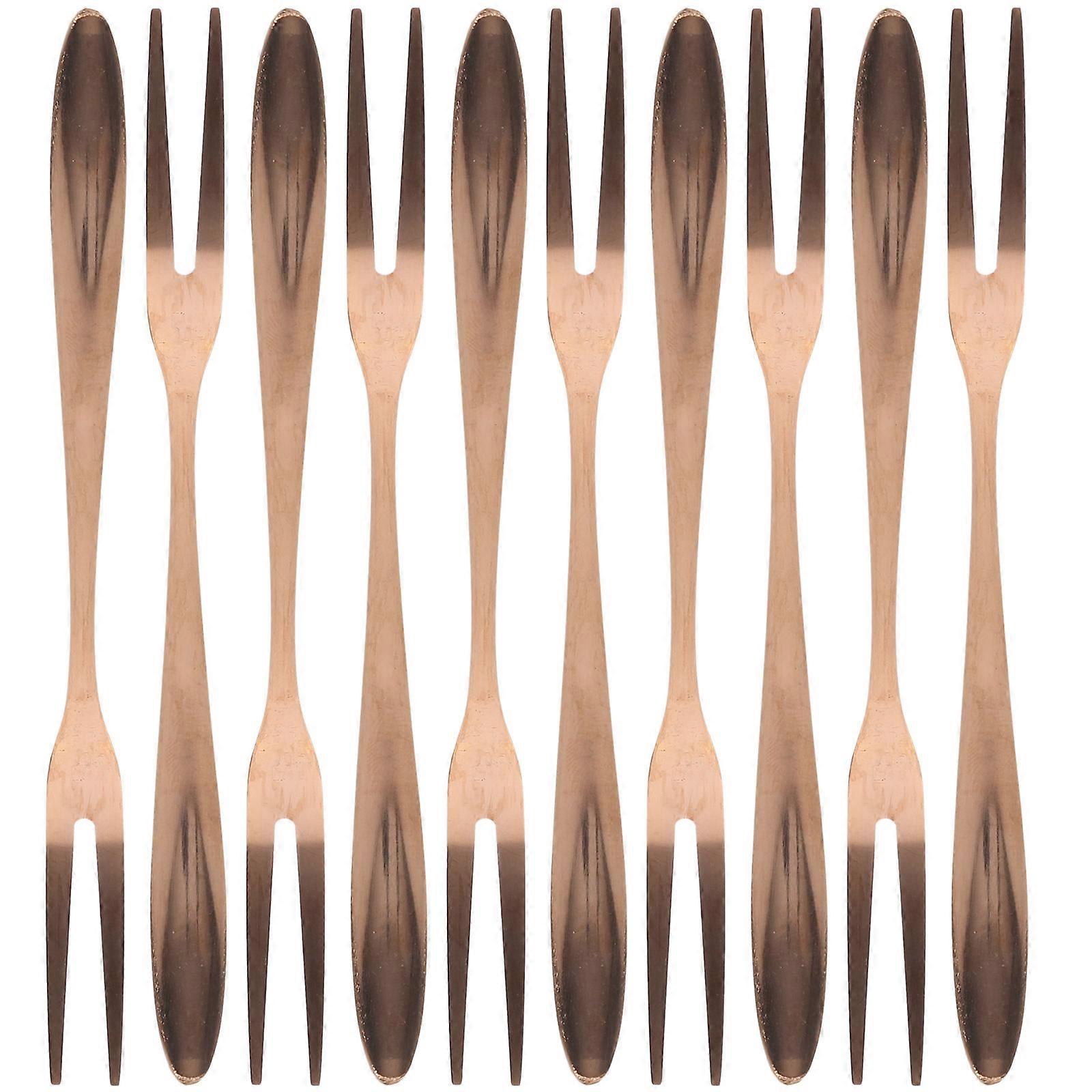 Brown Stainless Steel Fruit Forks Two Prongs for Eating Fruit 10Pcs Rose Gold