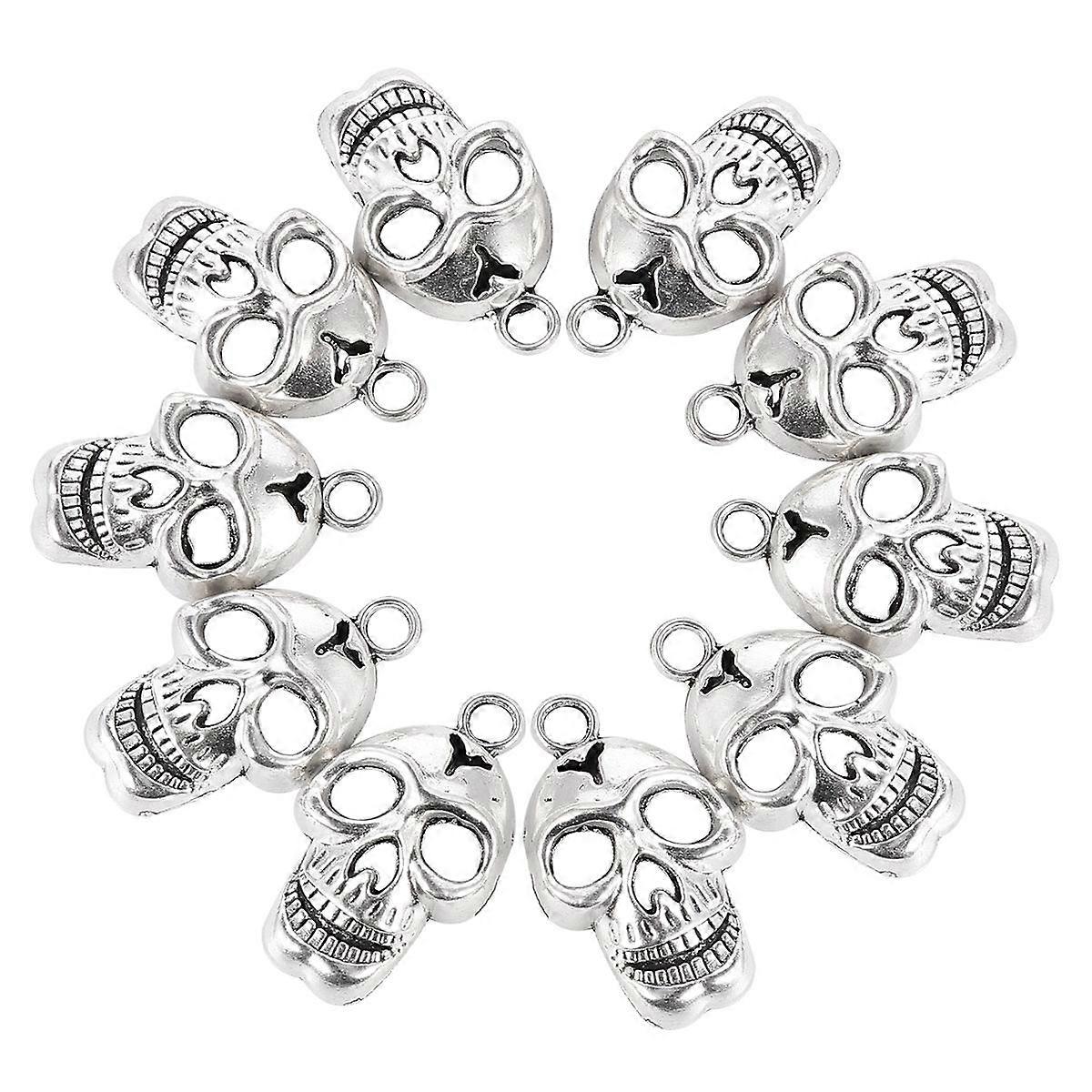 Silver Alloy Skull Necklace Pendant for Decoration 1Set 10 Pieces