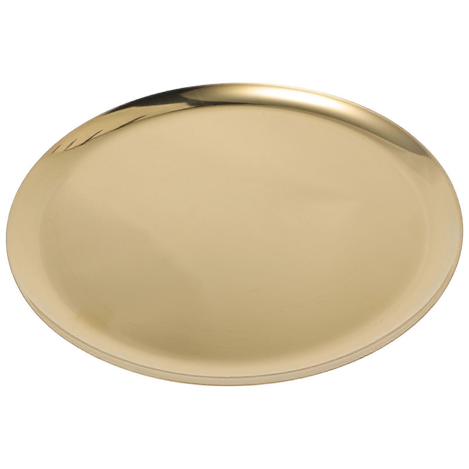 Serving Plates Stainless Steel Food Plate Golden Round For Home Use 28.00X28.00X1.00CM 1Pcs