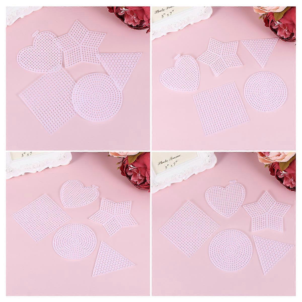 50Pcs DIY Plastic Mesh Piece Heart Shape Circle Square Triangle For Manual Embroidery Projects With 2Pcs Needles And Versatile Uses