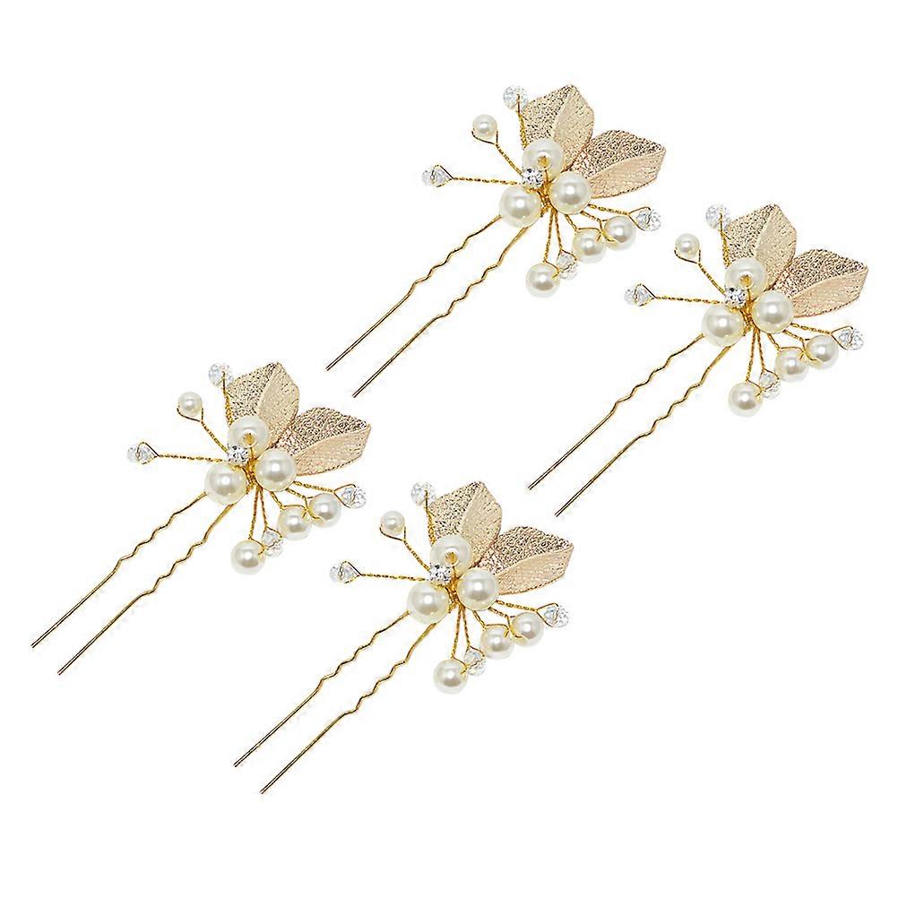 U-Shape Hair Chopsticks Metal Pearl Inlaid Updo Sticks for Women Golden 4Set