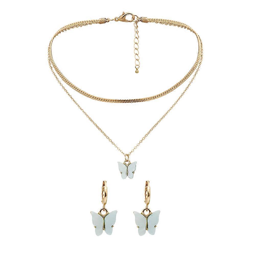 Butterflies Necklace Fashion Jewelry Set for Decor 1Set with Blue Alloy Material