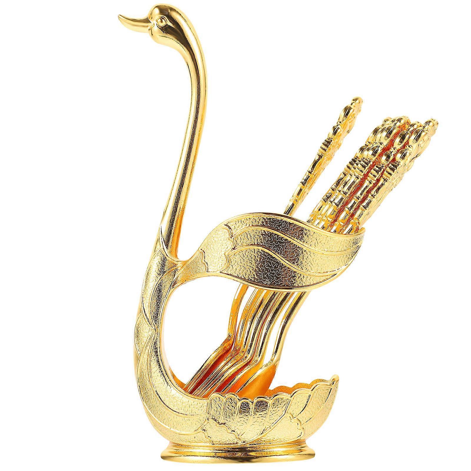 Cake Spoons Set Swan Shape Wedding Accessory Golden 11.20x1.80x0.30cm Rust-resistant Coating 1 Set
