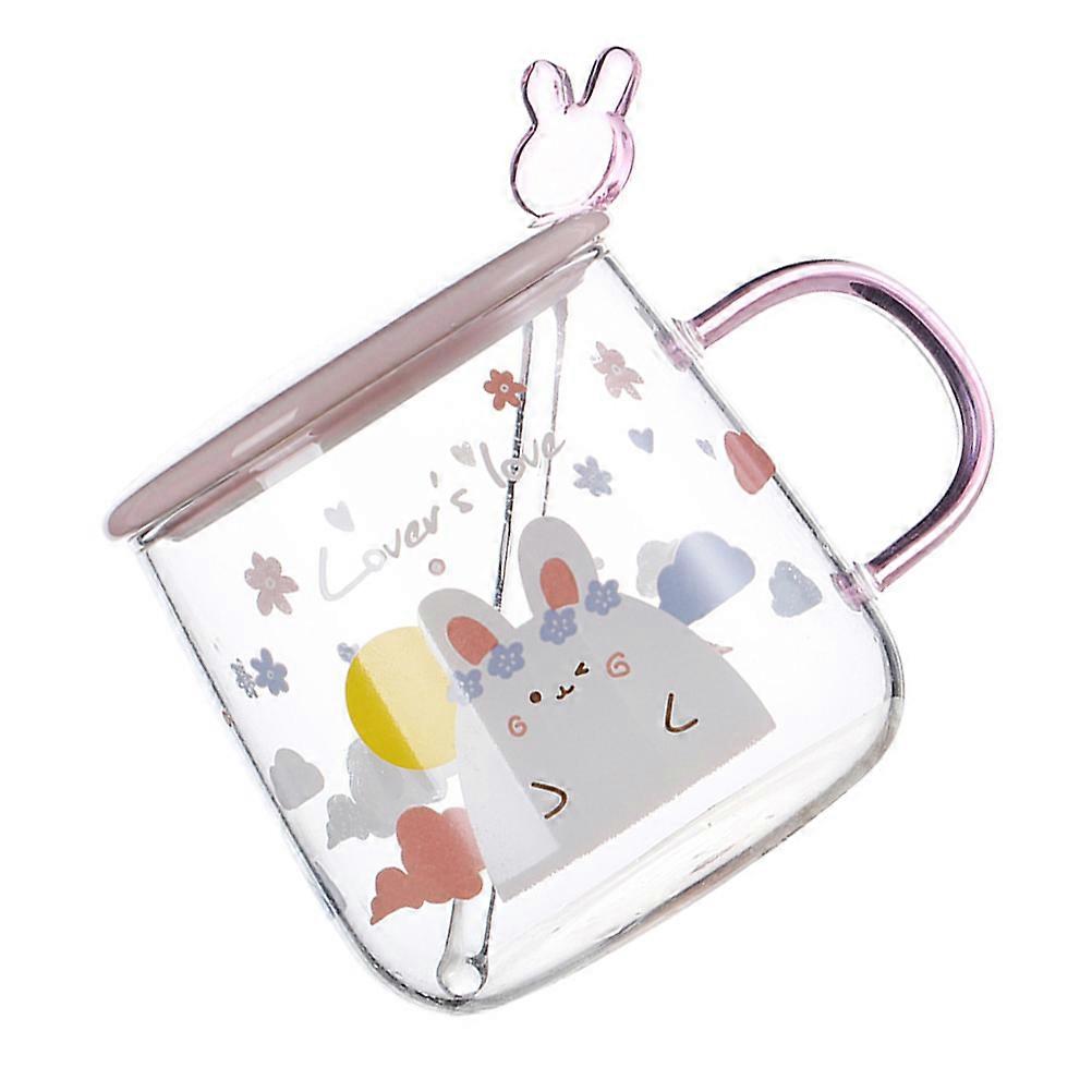 Cartoon Rabbit Glass Cup Heat Resistant Glass Cup with Spoon Lid
