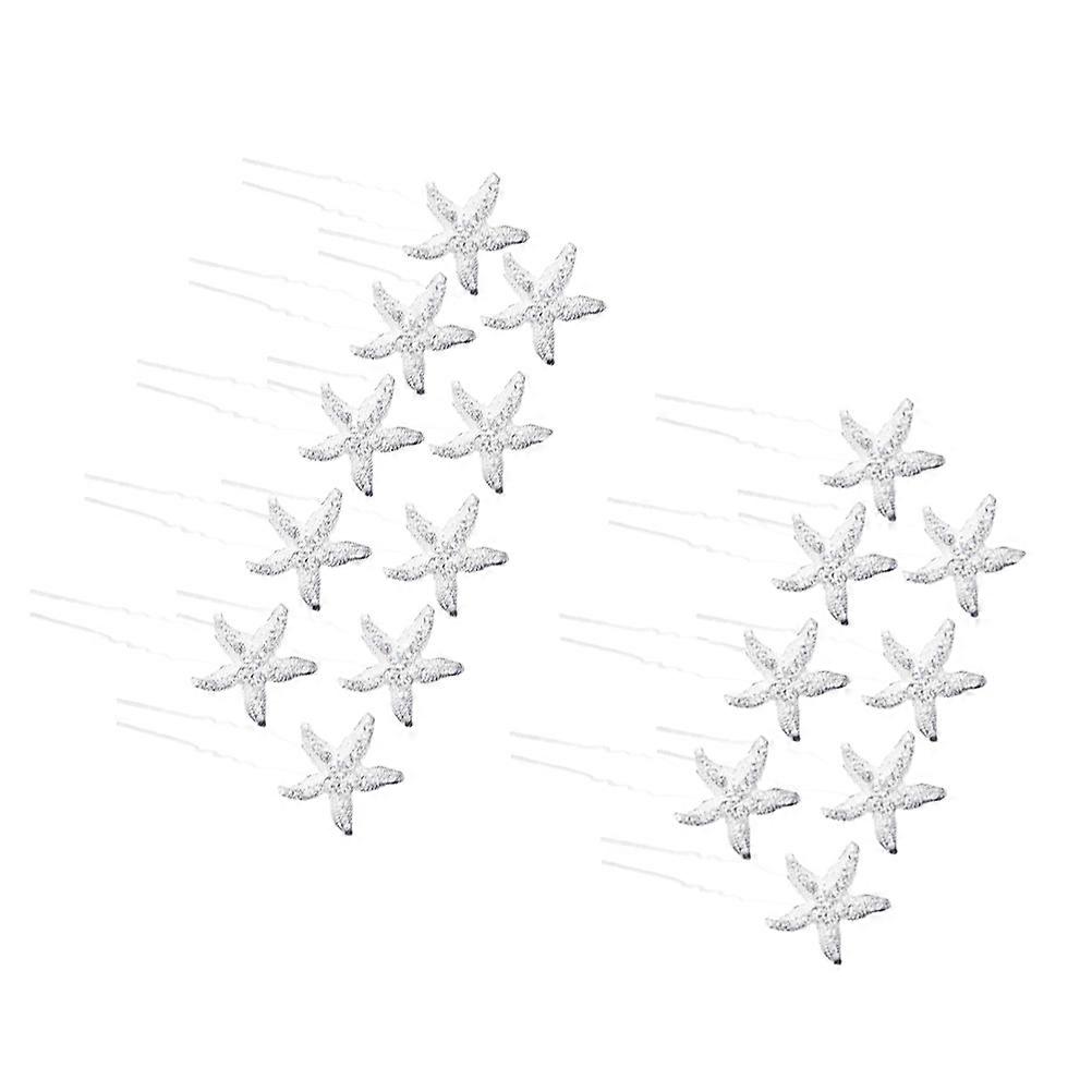 Bridal Hair Sea Star Shape U Shape Hairpins for Decoration 18Pcs Silver