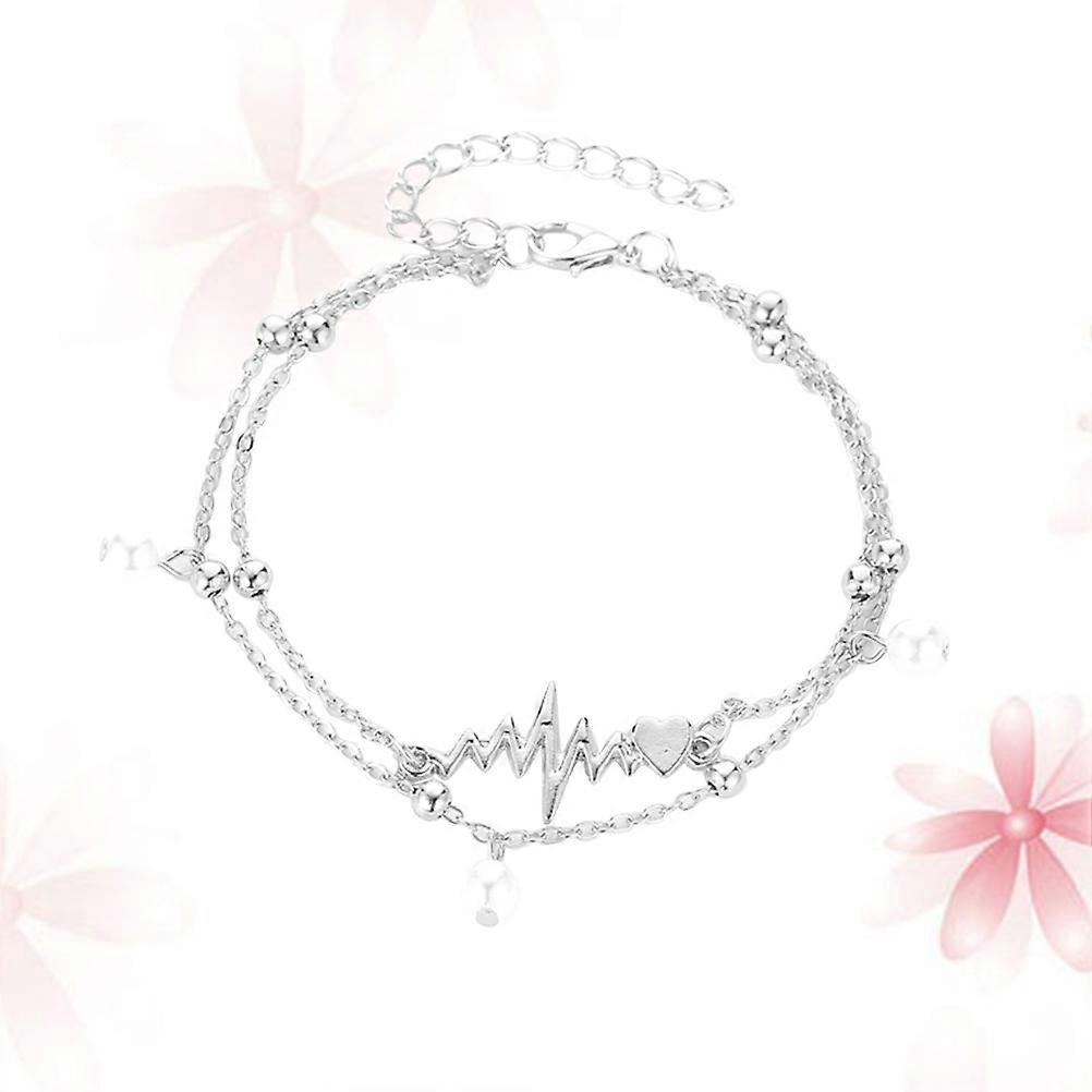 Silver Heartbeat Anklets for Girl Foot Jewelry