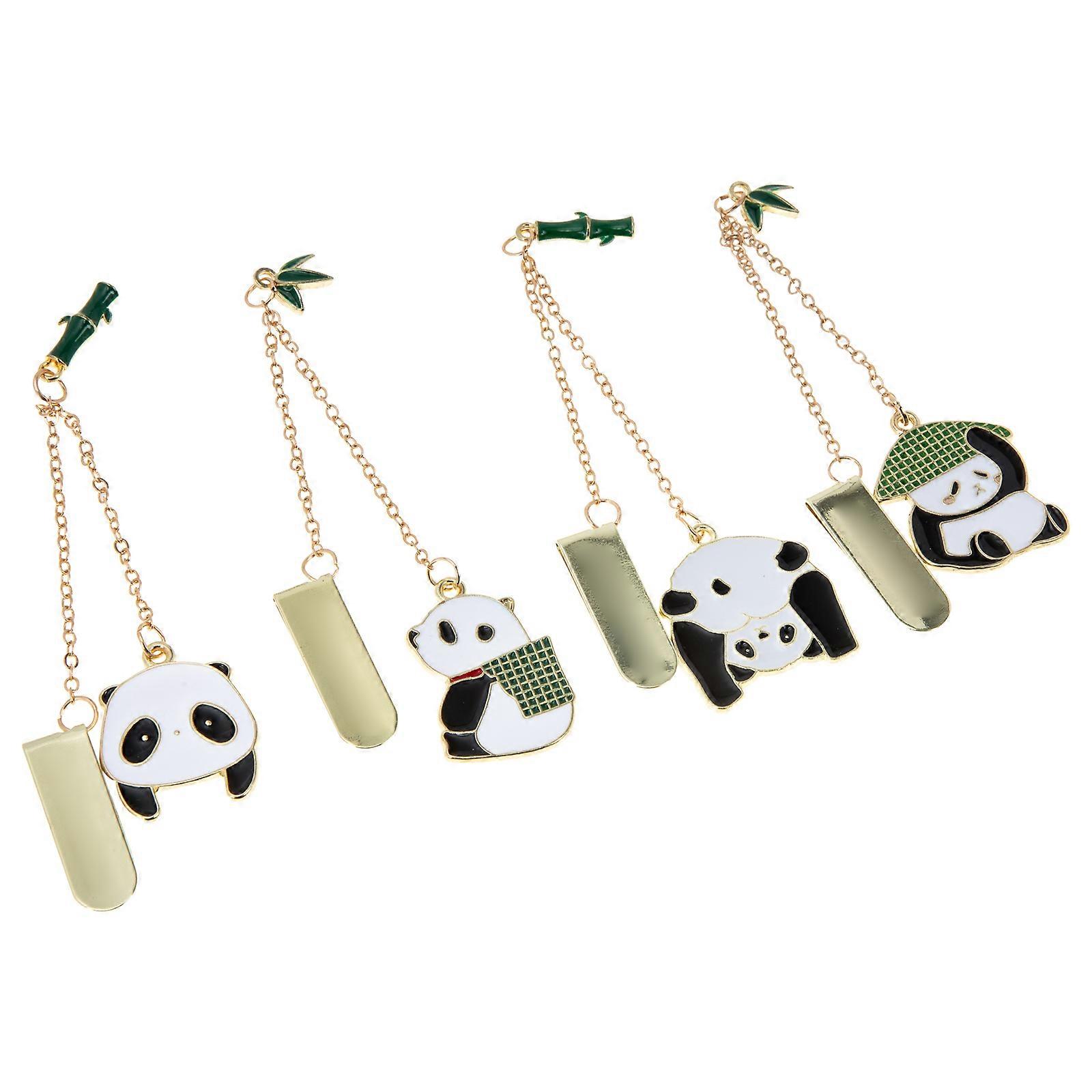 Metal Page Marker Clip-on Panda Pendant Bookmark Hanging 4Pcs Pack