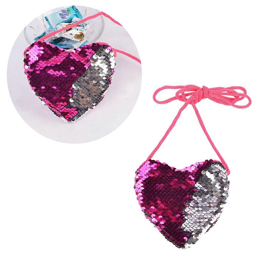 Little Girls Crossbody Purse Sequin Bling Heart-Shaped Bag Daily Use Pu 1Pcs