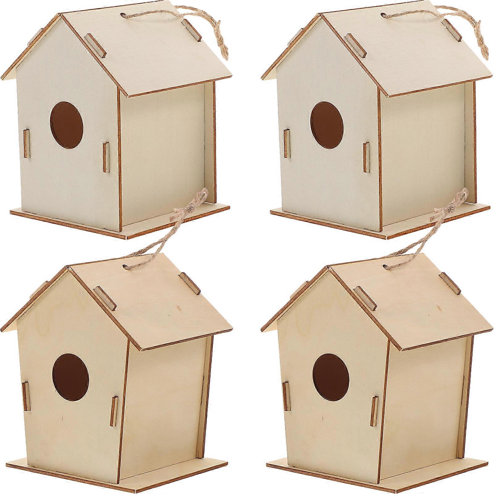 4Pcs Unfinished Wooden Birdhouse Craft For Kids DIY Outdoor Bird House Decorations Perfect For Easter