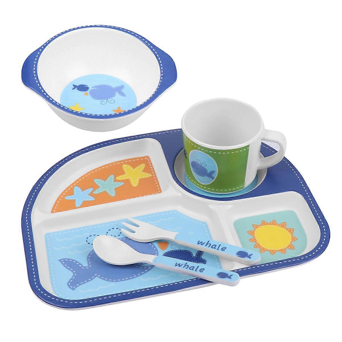 Durable Bamboo Fiber Tableware Set Whimsical Dinnerware For Kids Party Banquet Baby Shower Blue Eating Cutlery 1 Set