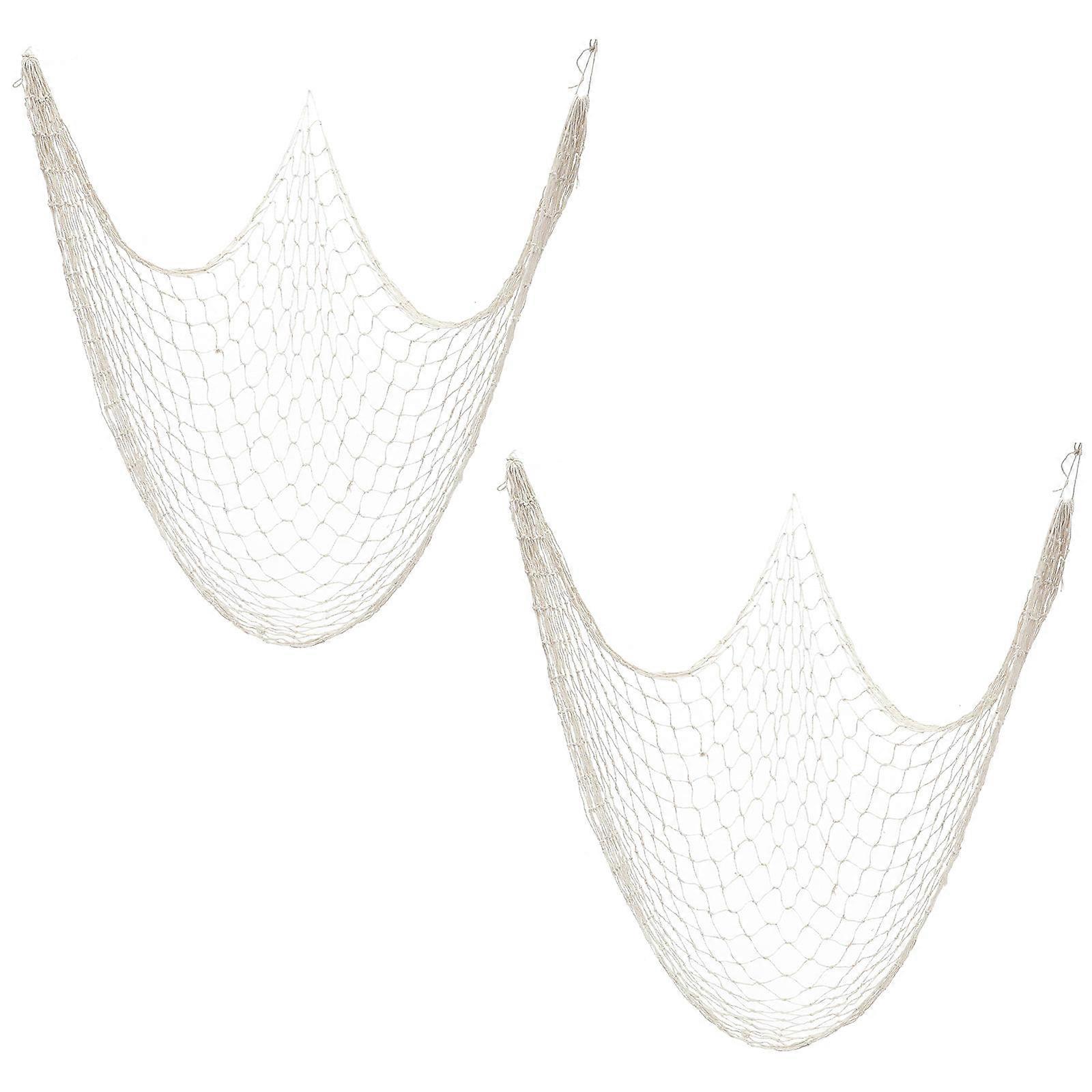 Fish Net Decoration Mediterranean Style Hanging Fish Net for Decor 2Pcs Beige Cotton Rope