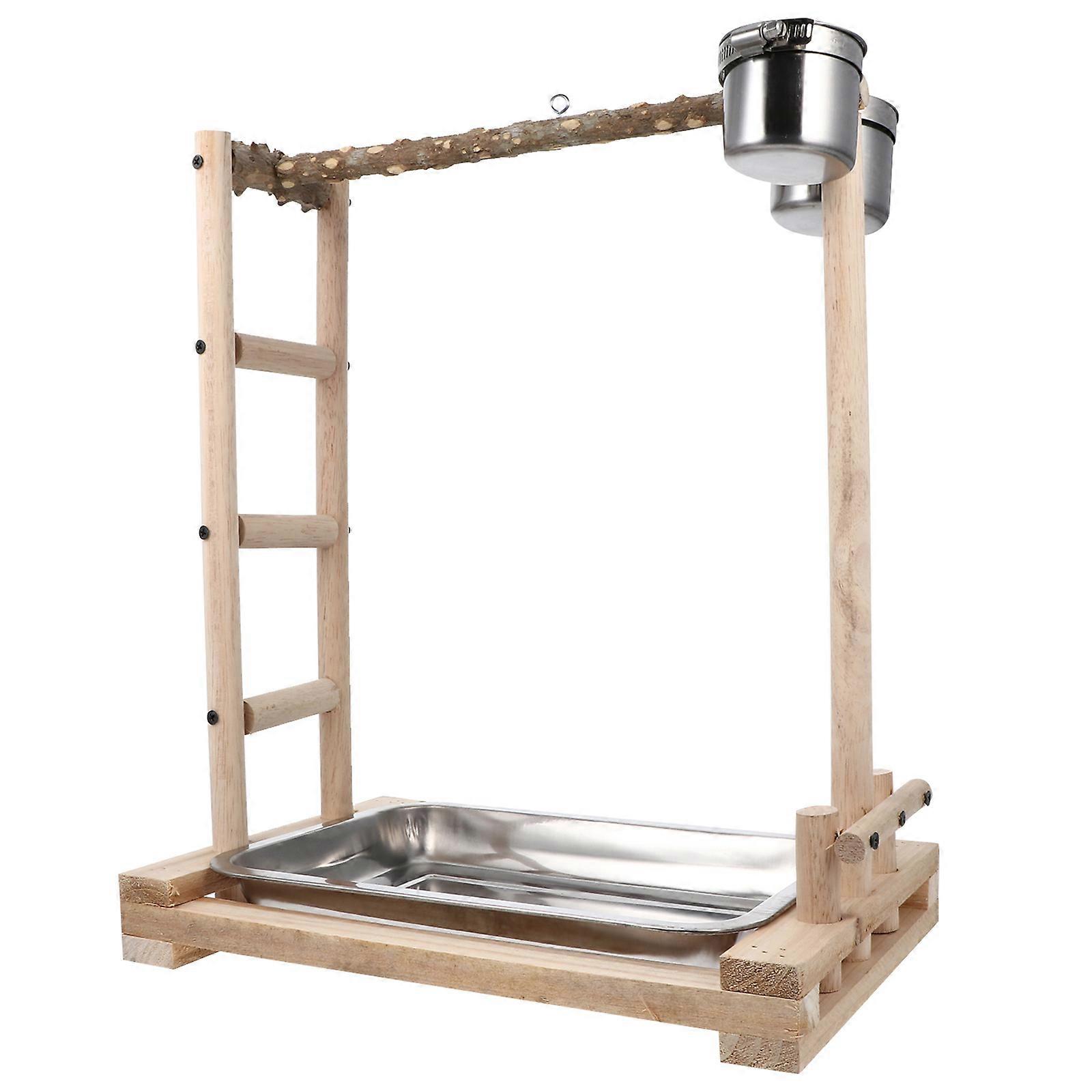 Ladder Pet Bird Feeder Stainless Steel Parrot Food Box for Parrot 1Pcs Wooden