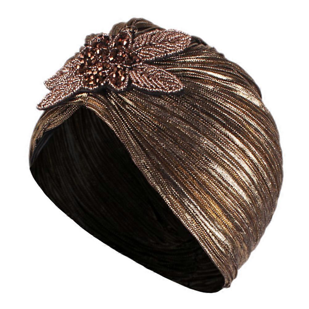 Noble Ruffled Turban Hat for Decoration 1Pcs Golden Gold Stamping Hat