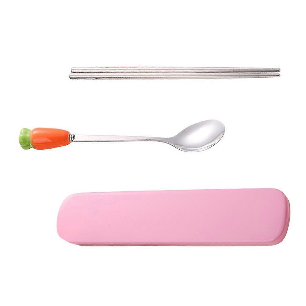 This is a set of portable cutlery, made of stainless steel and ceramic materials, no easy to deform. Combination set can can bring you a better experience. It includes a spoon and a pair of chopsticks, equipped with a storage box, portable and convenient. Features -Color: As Shown. -Material: Ceramic handle, stainless steel. -Size: About 17x3x2cm/6.68x1.18x0.79 inch. -Stainless steel material, not easy to rust, high and low temperature resistance. -The handle conforms to the shape of the hand, comfortable, and not tired after a long time using. -With a storage box, not take too much space and is easy to carry. -The combination of chopsticks and spoon, which can better meet the needs. -Adorable carrot shape makes babies fall with eating. Package list: 1 pair x chopsticks 1 x spoon 1