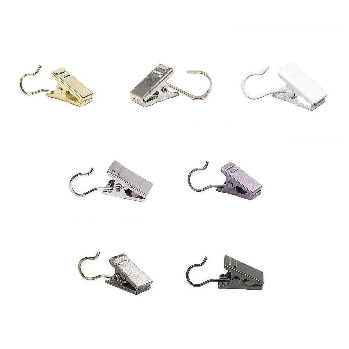 Material: Stainless Steel Clip Dimensions: 18 Mm X 9 Mm (0.7 In X 0.35 In) Hook Style: Curved Hook Colour Options: Silver White Black Golden Copper Bronze Silver-White Quantity: 50 Pcs Weight Capacity: Suitable For Lightweight To Medium-Weight Curtains And Decor Items You Will Receive