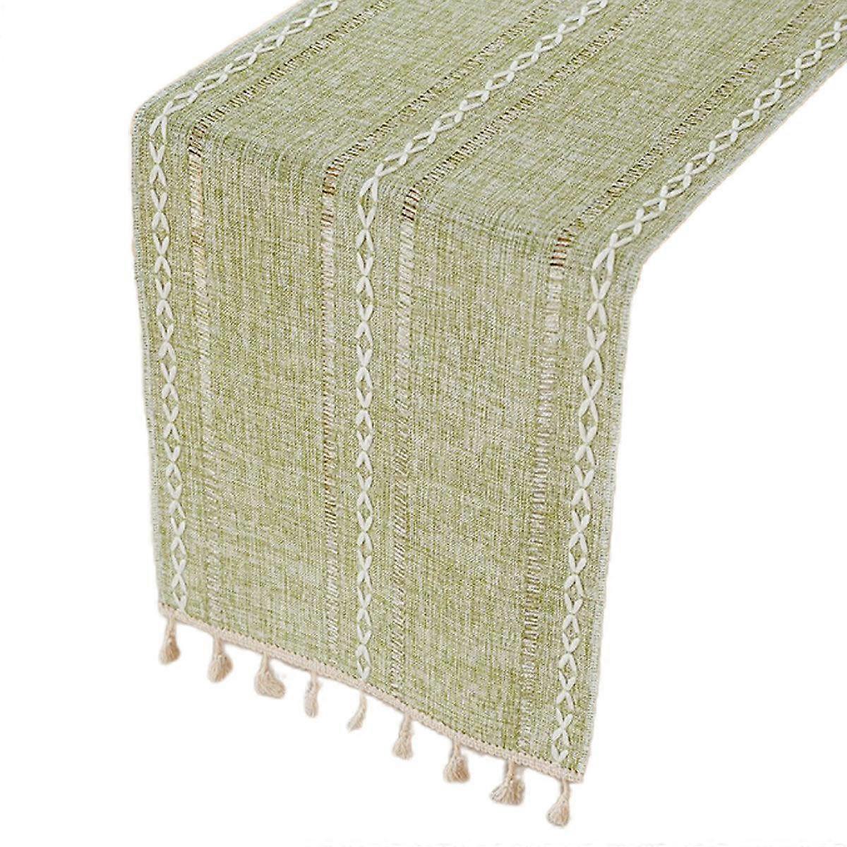 Solid Colour Woven Hollow Fringe Table Runner Home Dining Tablecloth Decoration 33X183cm Green Table Runners