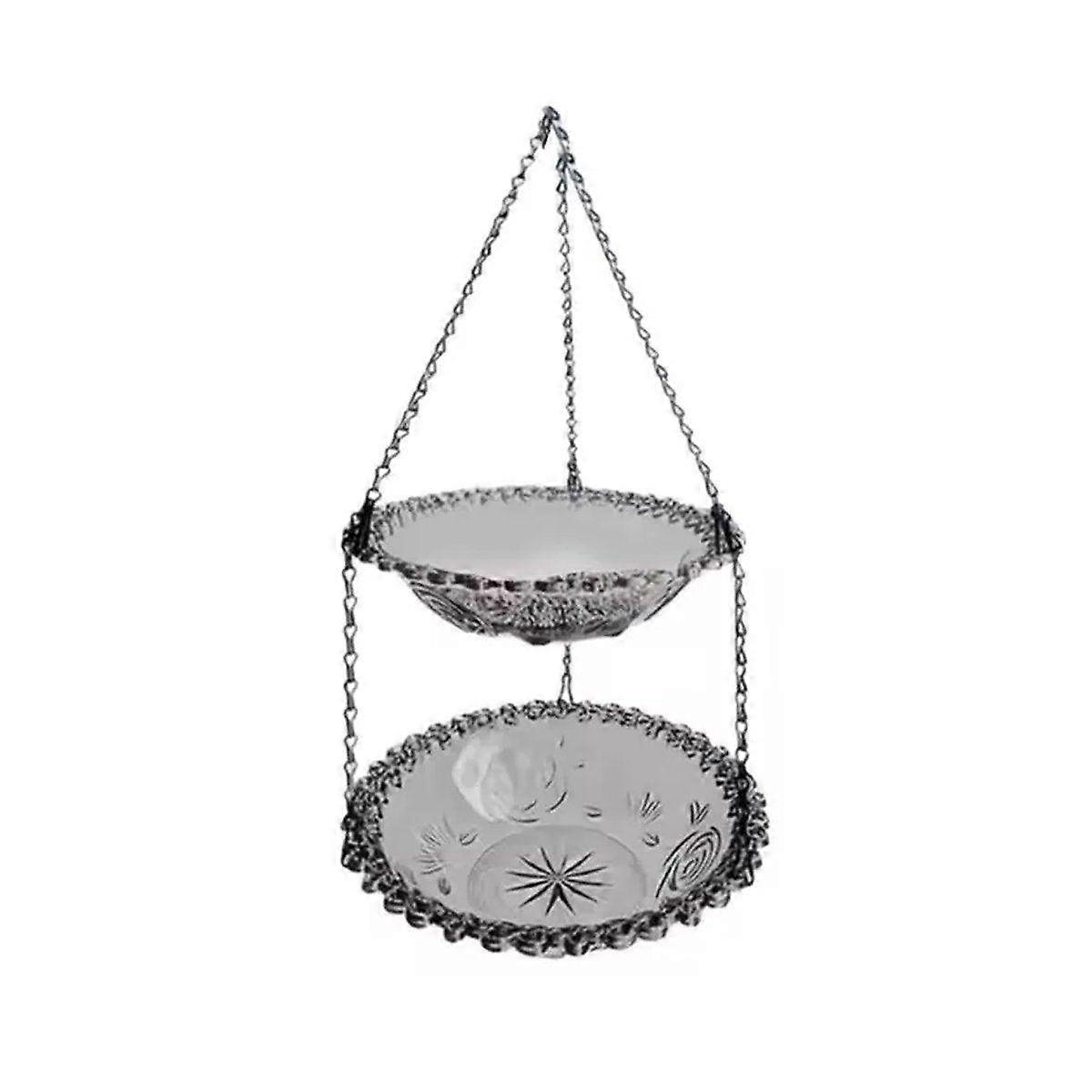 Enhance Your Garden Or Patio With This Stylish Outdoor Hanging Bird Feeder And Bath Decoration. Designed With Intricate Patterns And Vibrant Colours It Offers An Attractive And Functional Space For Birds To Feed And Bathe. Made From Durable Materials This Two-Layer Feeder Can Hold Seeds And Water Ensuring A Welcoming Spot For Birds. The Elegant Chain Design Allows For Easy Hanging In Gardens Patios Or Porches Blending Seamlessly With Any Outdoor Decor.