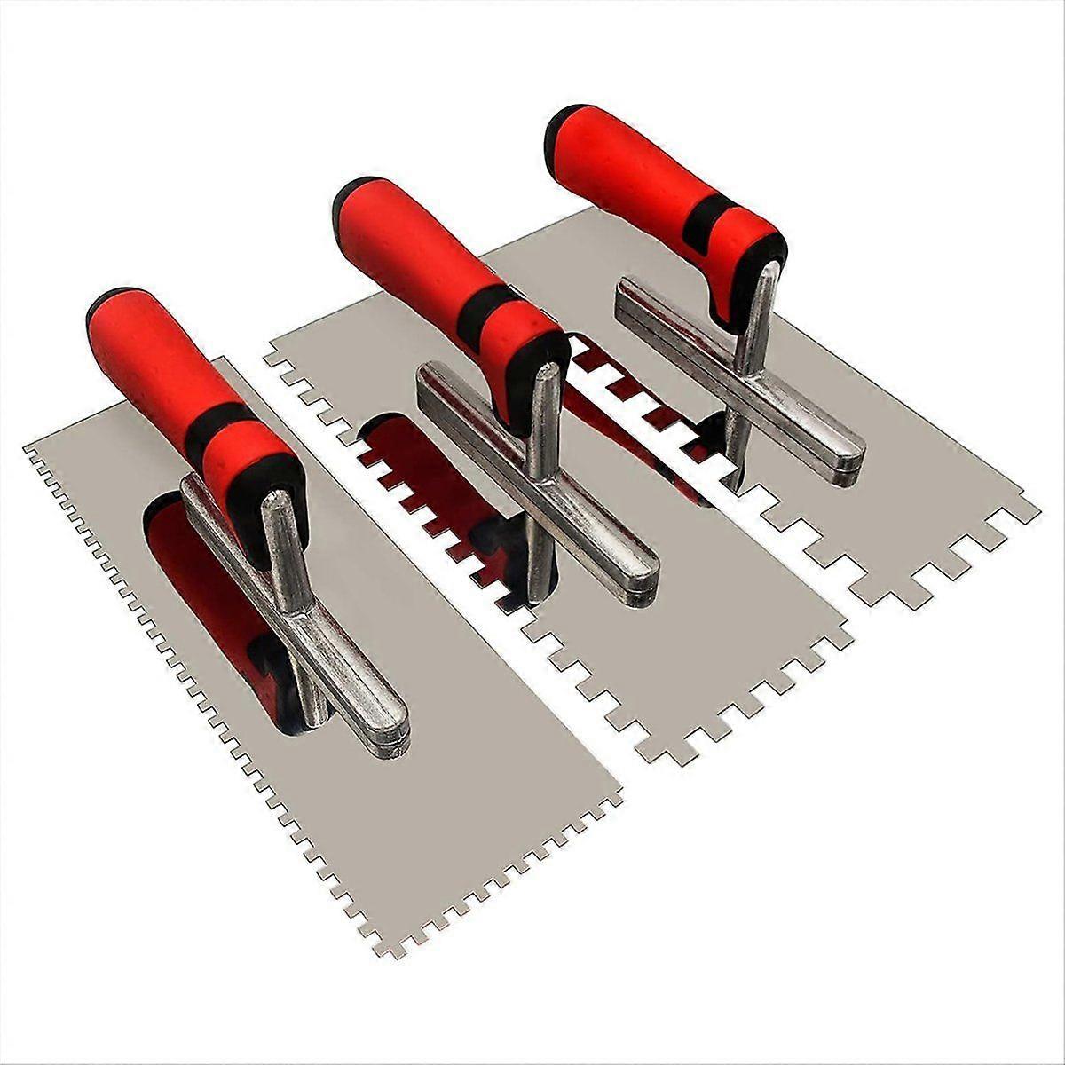 Tile Tools Stainless Steel Square Notched Trowel 3 PCs ( Size: 5/32inch & 5/16inch & 1/2inch) Masonry Hand Kit
