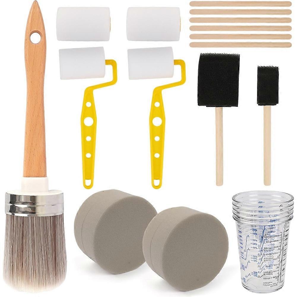 19 Pieces Paint Brush and Roller Set, Painting Supplies Include Cups, Sponge and Mixing Sticks, Ideal for DIY & Painting