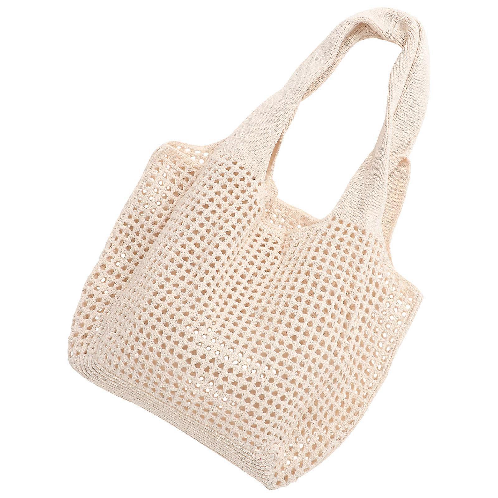 Khaki Woven Beach Tote Bag Hollow Handbag for Storage Use Summer Tote Bag