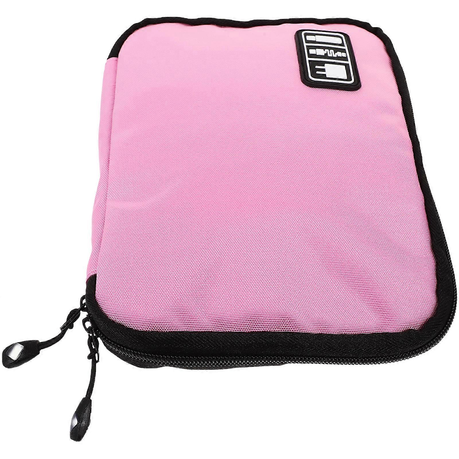Waterproof USB Cable Storage Bag for Electronics Accessories Case 2 Layer Pink