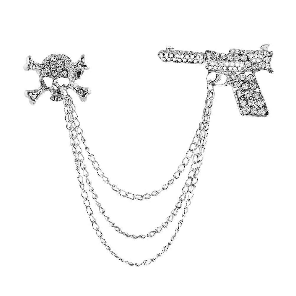 Chest Badge Skull Brooch Rhinestone Brooch Pin for Men with Chain Tassel