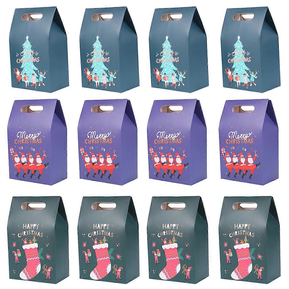 These Candy boxes can be used for wrapping candy or goodie. Perfect for giving out party favors and small gifts like: candy, cookies, snacks, chocolates and more. Great for Christmas party. Features -Color: Assorted Color -Material: Paper -Size: 16.00X10.00X6.00cm/6.29X3.93X2.36in - Environmentally friendly and degradable materials, safe to with food. - 3 types of 4 boxes, 12 boxes in total, to add fun to your party. - Perfect for packaging Christmas gifts for your family members, children, friends, etc. - Lovely shape and appearance, make your party gifts different from other families. - Use ribbons for embellishment and decoration to make the box more. Package list: 12 x Candy boxes