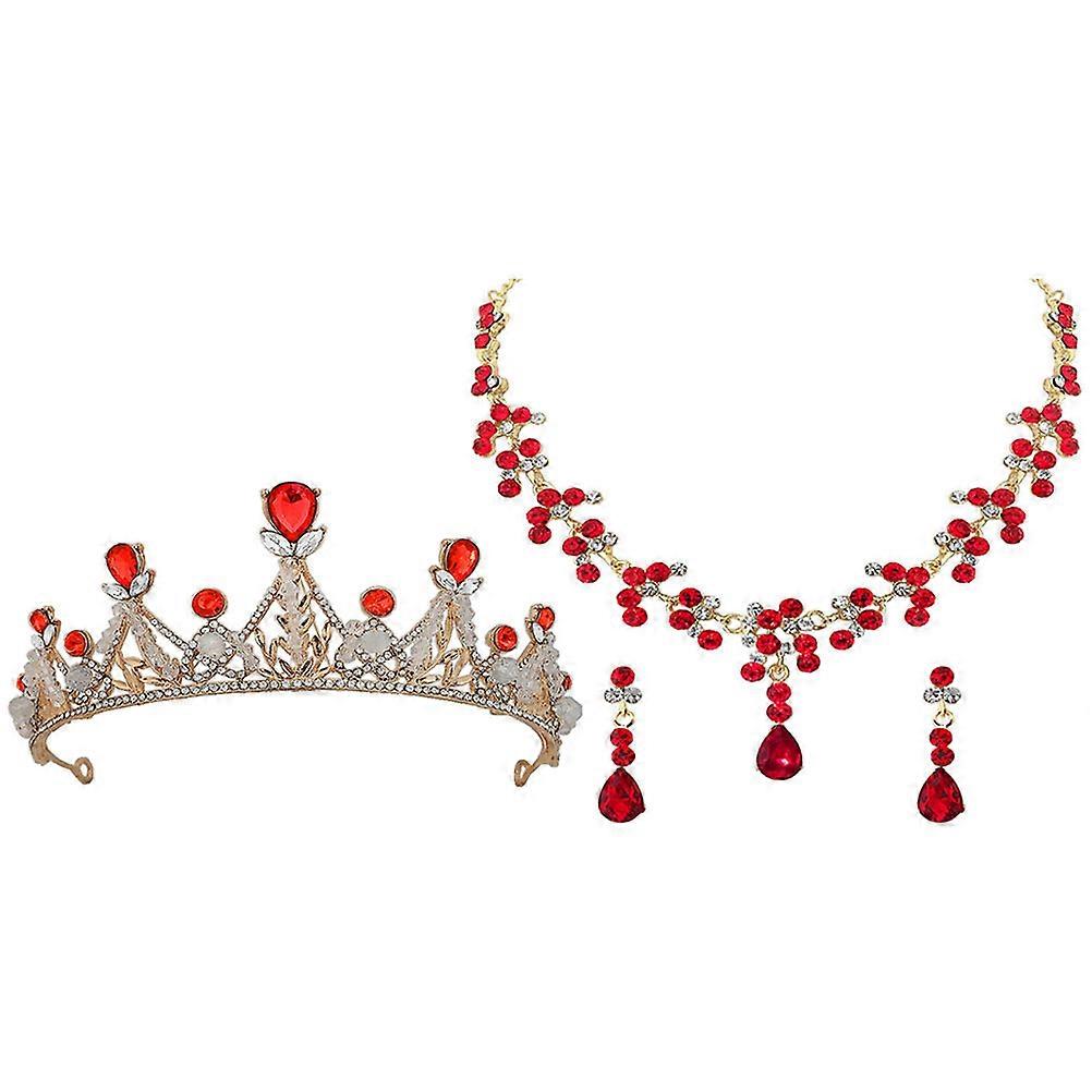 Girls Crown Necklace and Earrings Set for Birthday 1Set Red Jewelry
