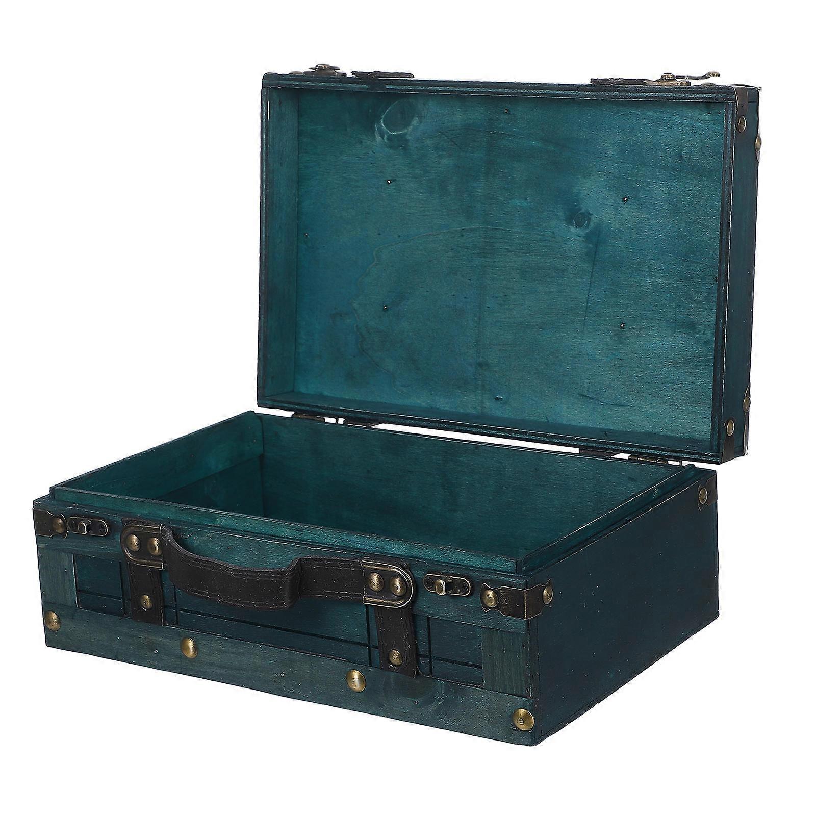 Vintage Wooden Treasure Chest for Storage Green Portable Jewelry Box